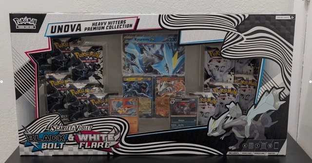 Pokémon TCG: Unova Heavy Hitters Premium Collection – Sealed – Costco Exclusive. Includes: 1 Jumbo Card, 4 Promo cards, 6 Black Bolt booster packs, 6 White Flare booster packs. Pick up in Scarborough, or I can drop off for $10 if you're nearby. Check out my other listings for sealed items/cards!