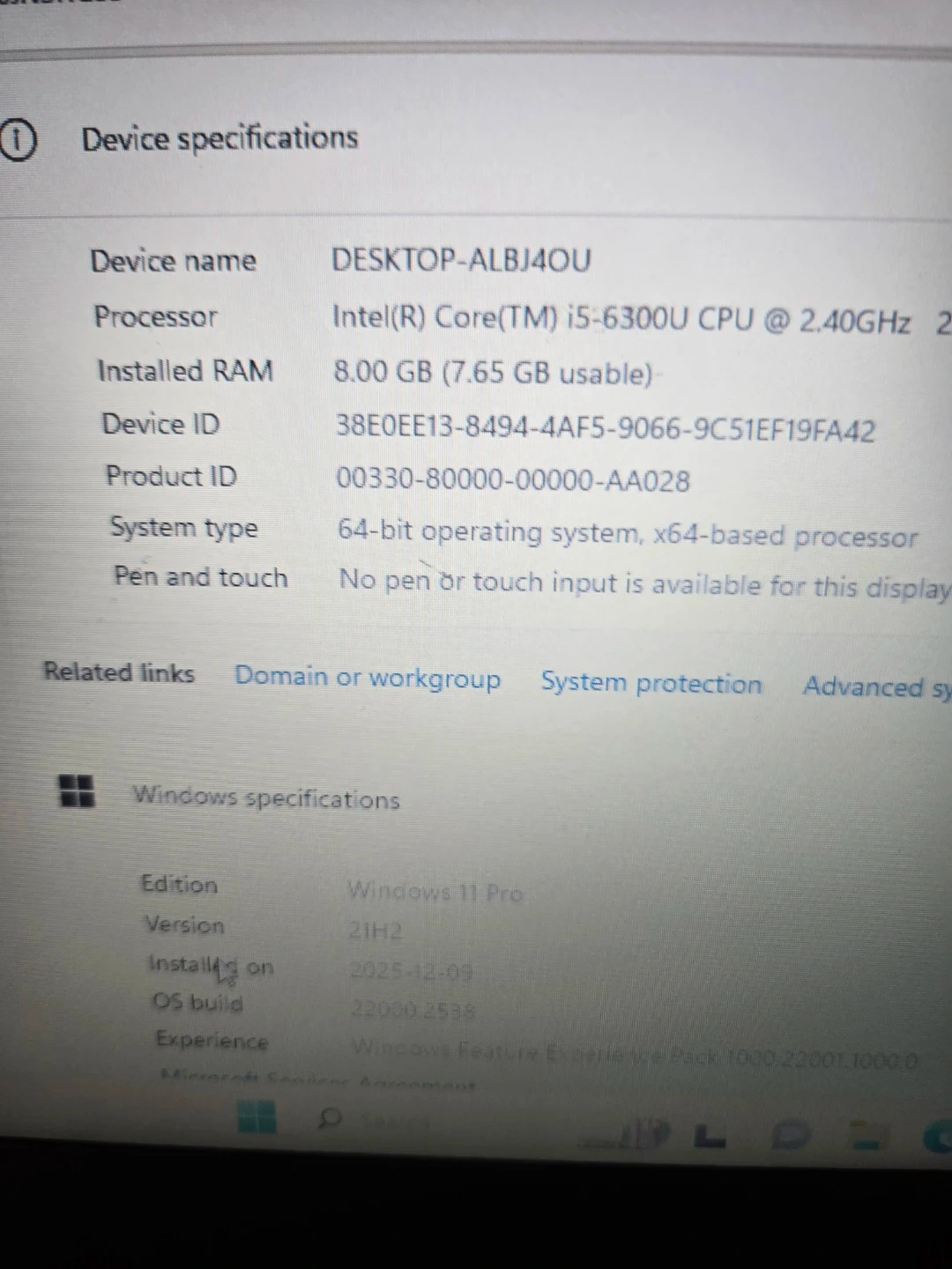 Intel core i5-6300u cpu @ 2.5 GHZZ 6th gen