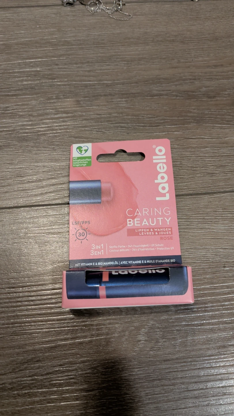 This Labello Caring Beauty balm provides gentle colour for lips and cheeks. It offers 24-hour moisture and UV protection. Contains Vitamin E and organic almond oil for nourishment.