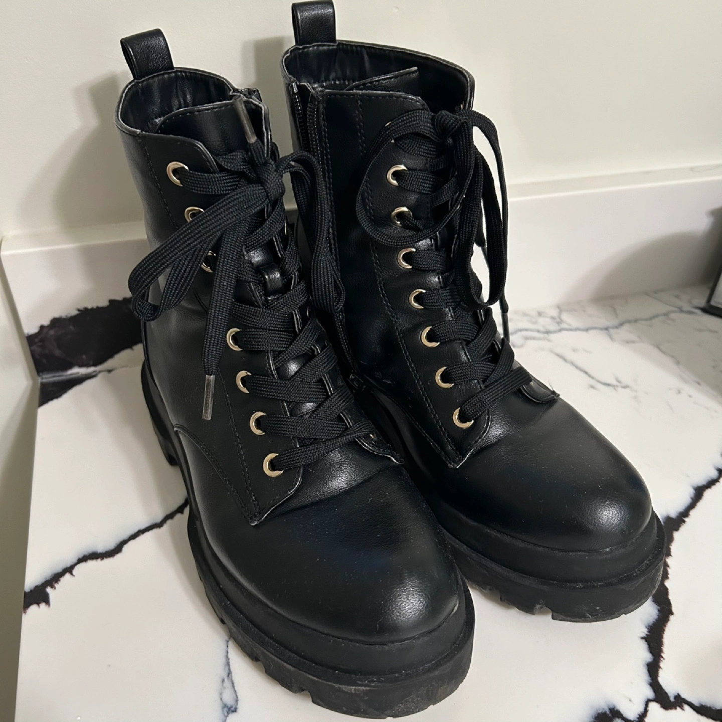($10 TODAY) Call It Spring - Black Lace-Up Combat Boots - Size 7