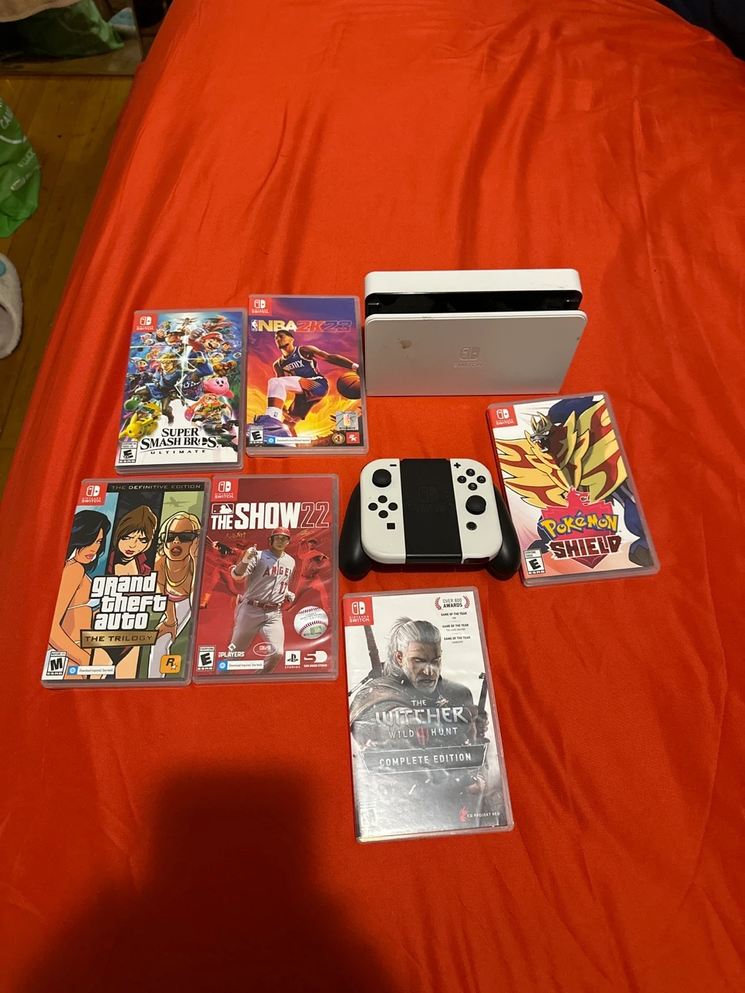 Selling a Nintendo Switch OLED model! Comes with the console, joy-cons, and a selection of games. Perfect for gaming on the go or at home!