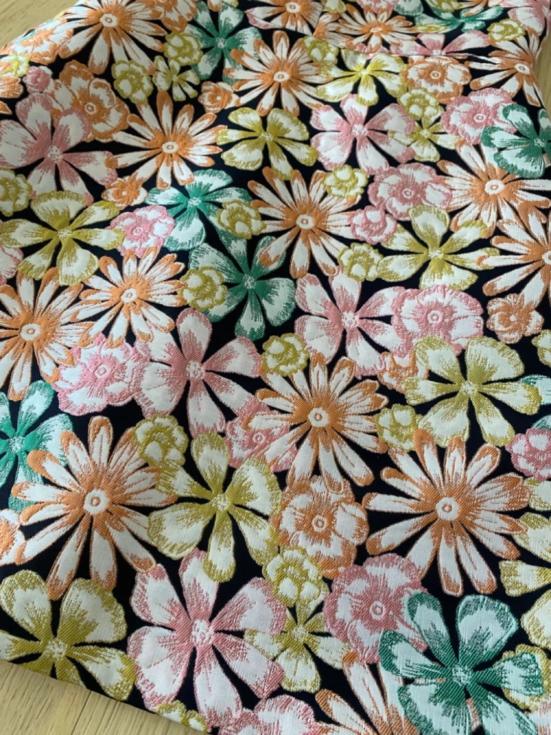 This is a Banana Republic dress in size 0P. It features a colourful floral pattern on a dark navy background. The dress is in great condition and perfect for spring or summer