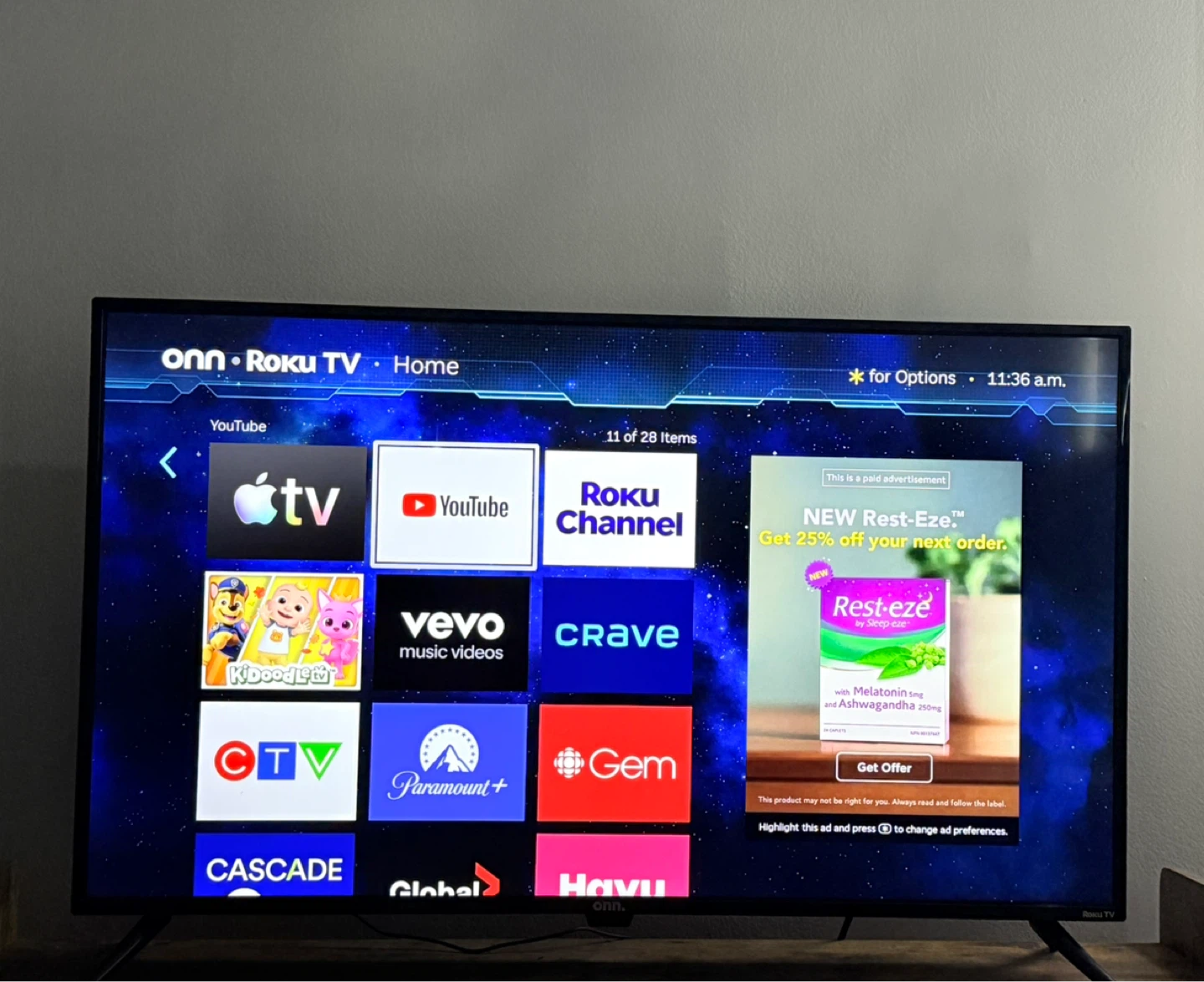 onn. 43" 4K UHD HDR Roku Smart TV (Model 100012584-CA-Black), 3 HDMI ports, 60 Hz