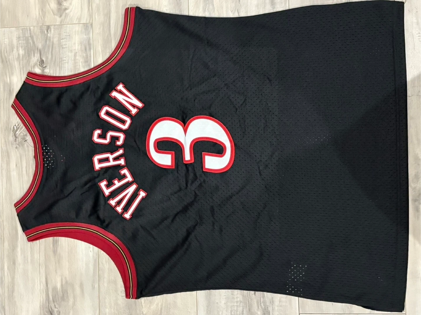 Up for grabs is a Mitchell & Ness Allen Iverson Philadelphia Sixers jersey! This Hardwood Classics jersey is a must-have for any basketball fan. It features Iverson's name and number 3 on the back. A great way to show your love for the game
