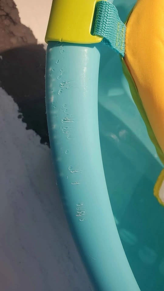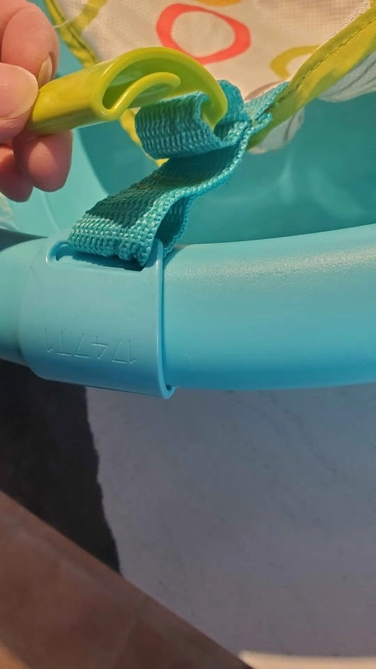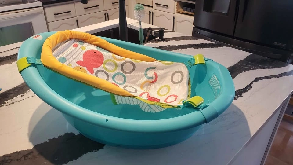 Fisher-Price baby bath tub. Seat has 2 height settling clips to adjust as baby gets heavier. Has a couple puppy chew marks on one side and minor scuff marks. $5
