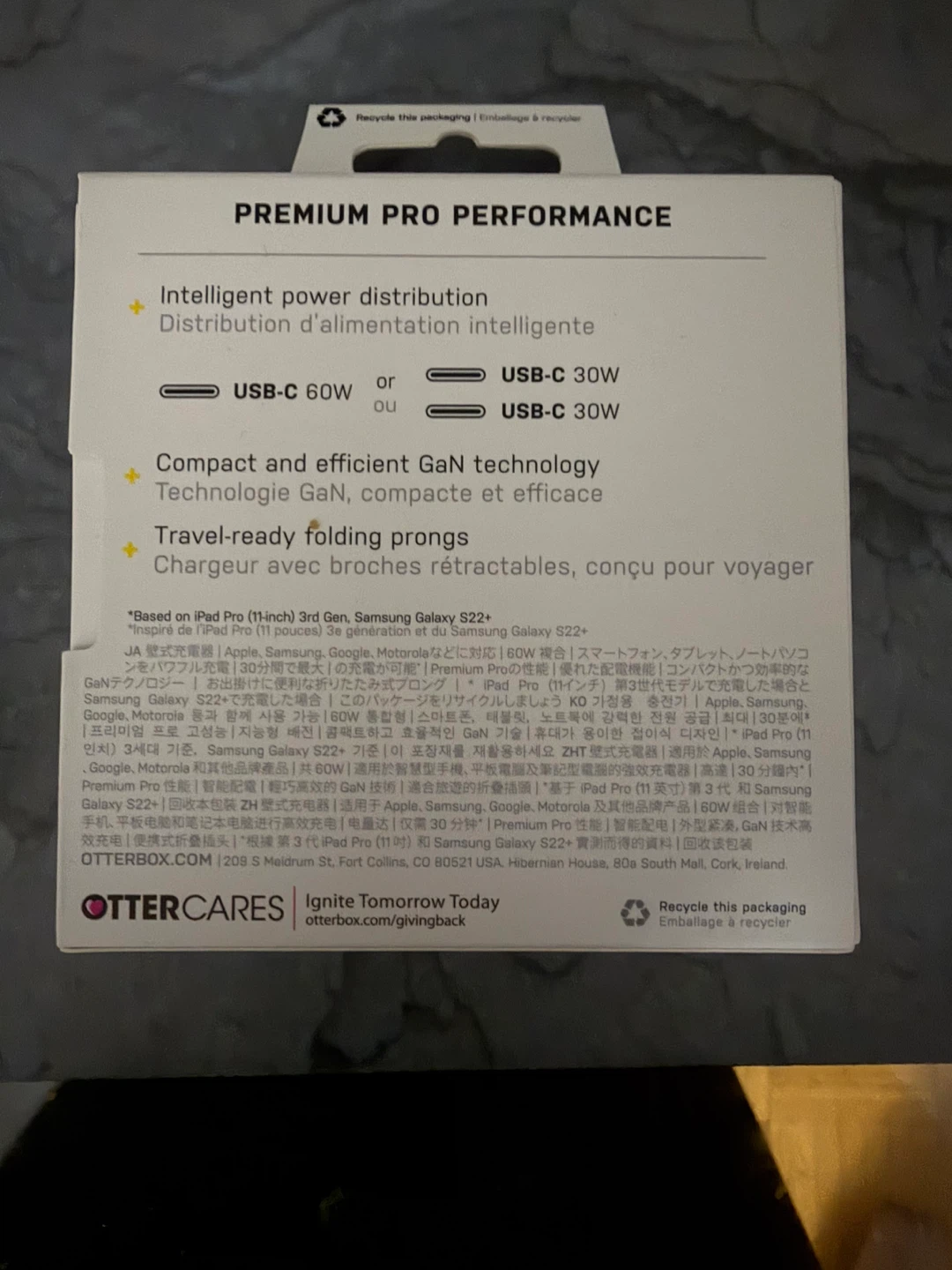 The Premium Pro 60w charger from OtterBox is the high-performance USB-C wall charger that can handle all your device powering needs. USB-Power Delivery (PD) and Programmable Power Supply (PPS) technology provides the most efficient charging with variable voltage to your device