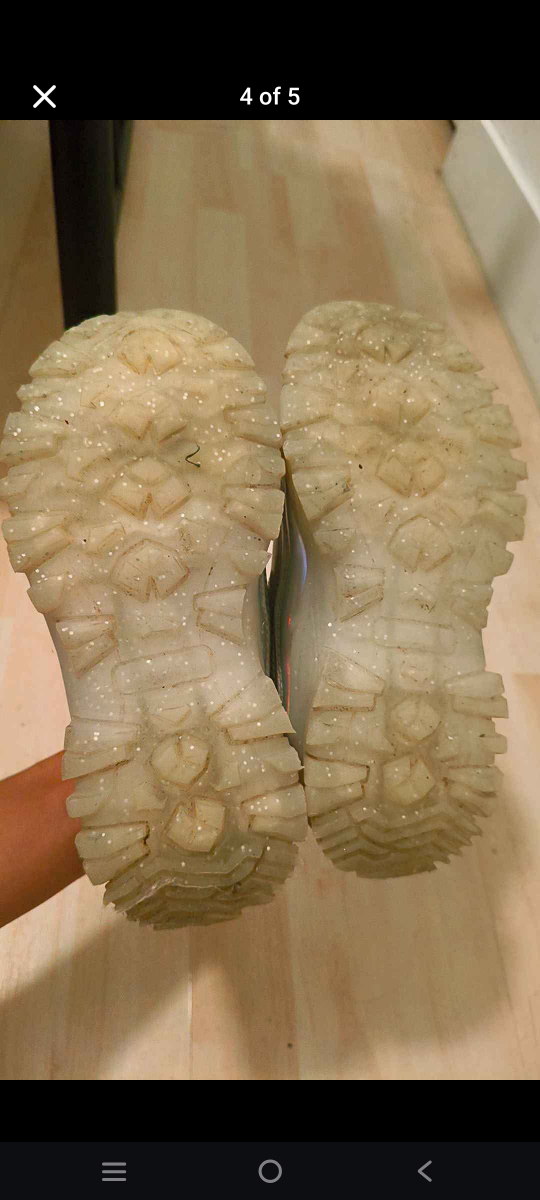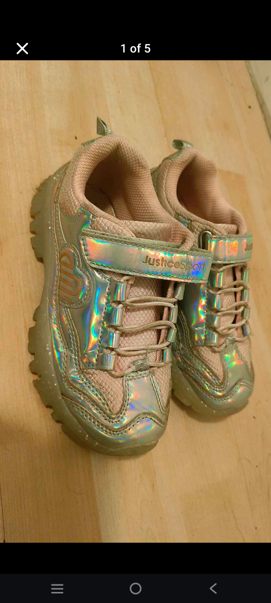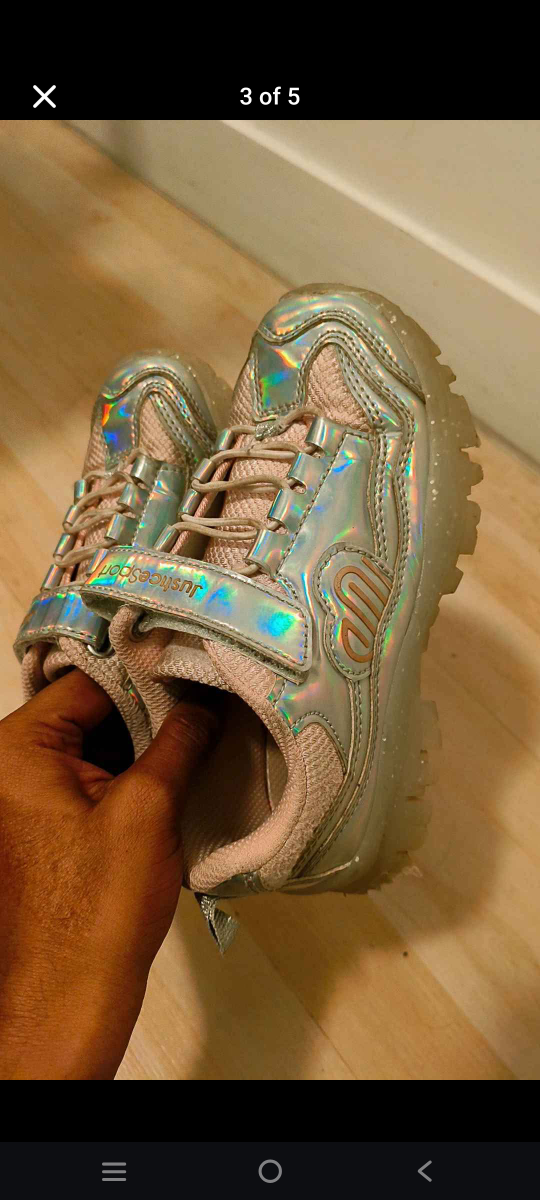 Cute iridescent pink and silver sneakers. Velcro straps and light-up soles. Great for active play. Size 13.