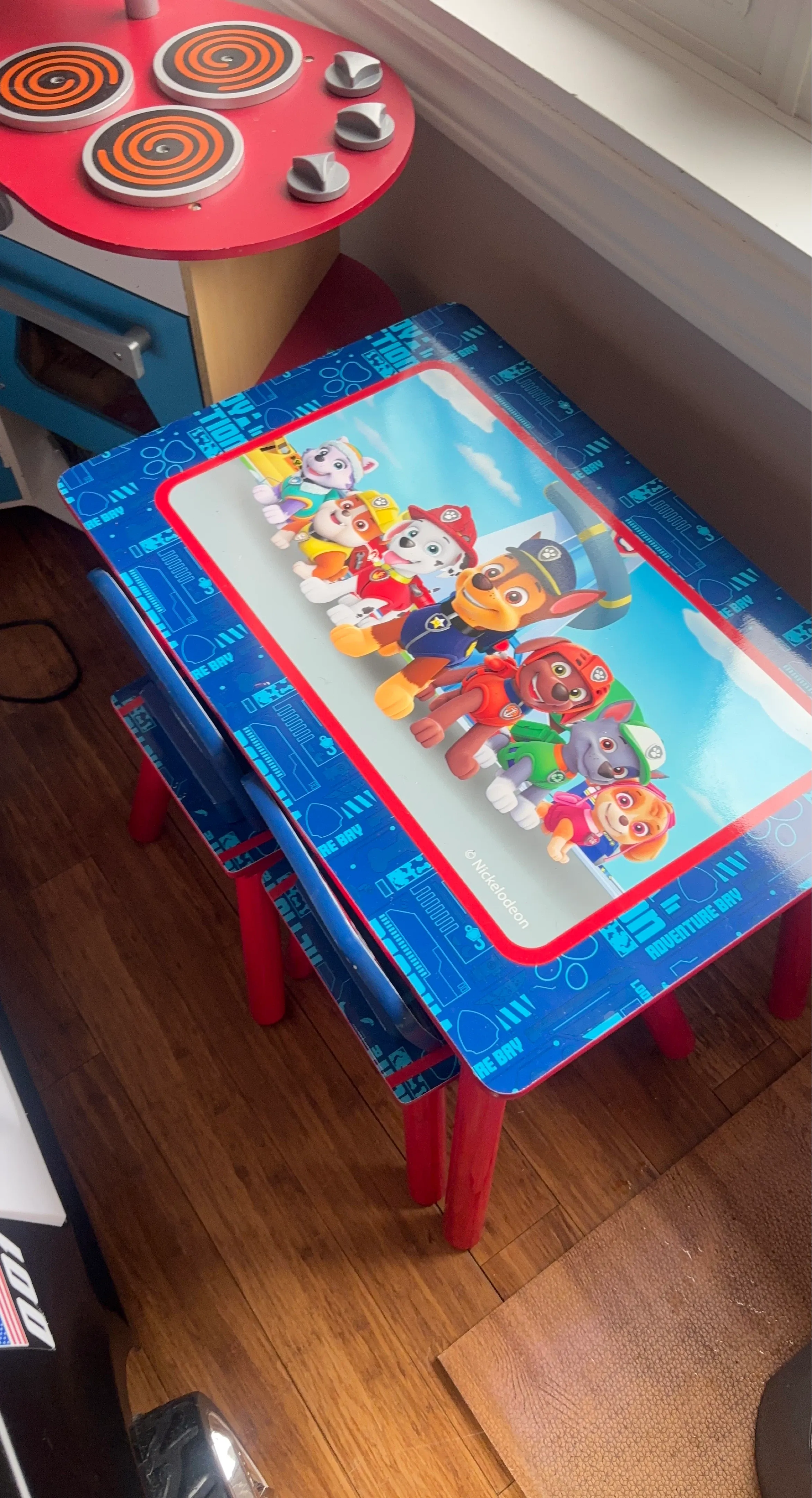 This Paw Patrol table and chairs set features the characters from Adventure Bay! It's made for little ones to enjoy. Perfect for playtime or craft time!