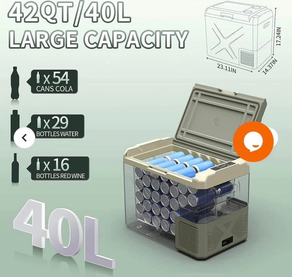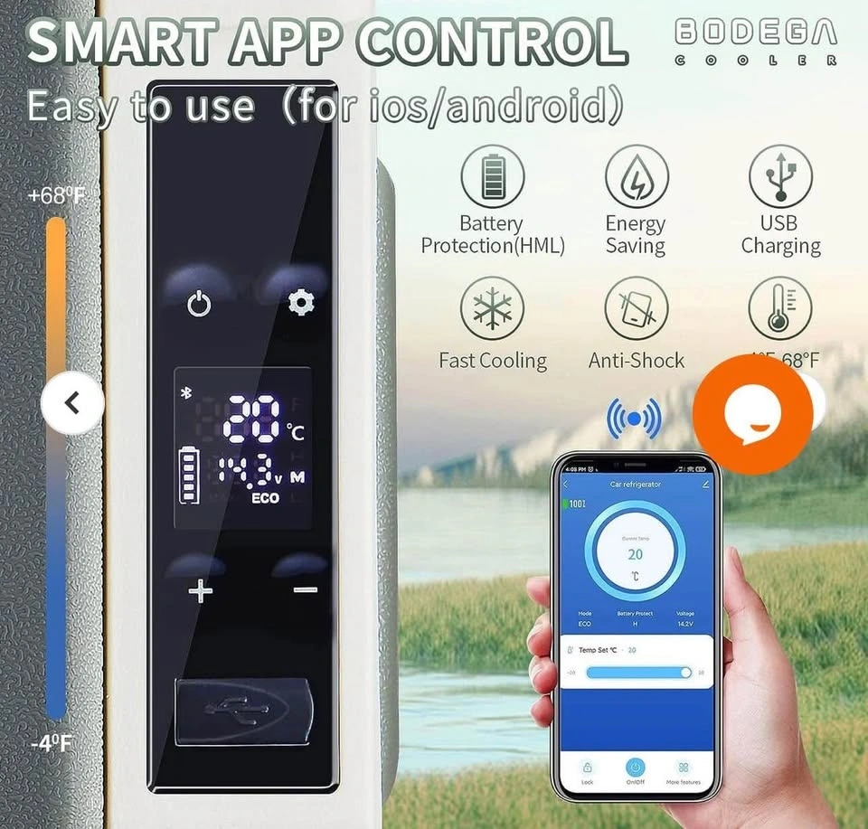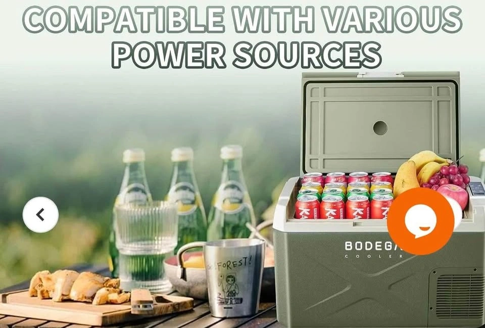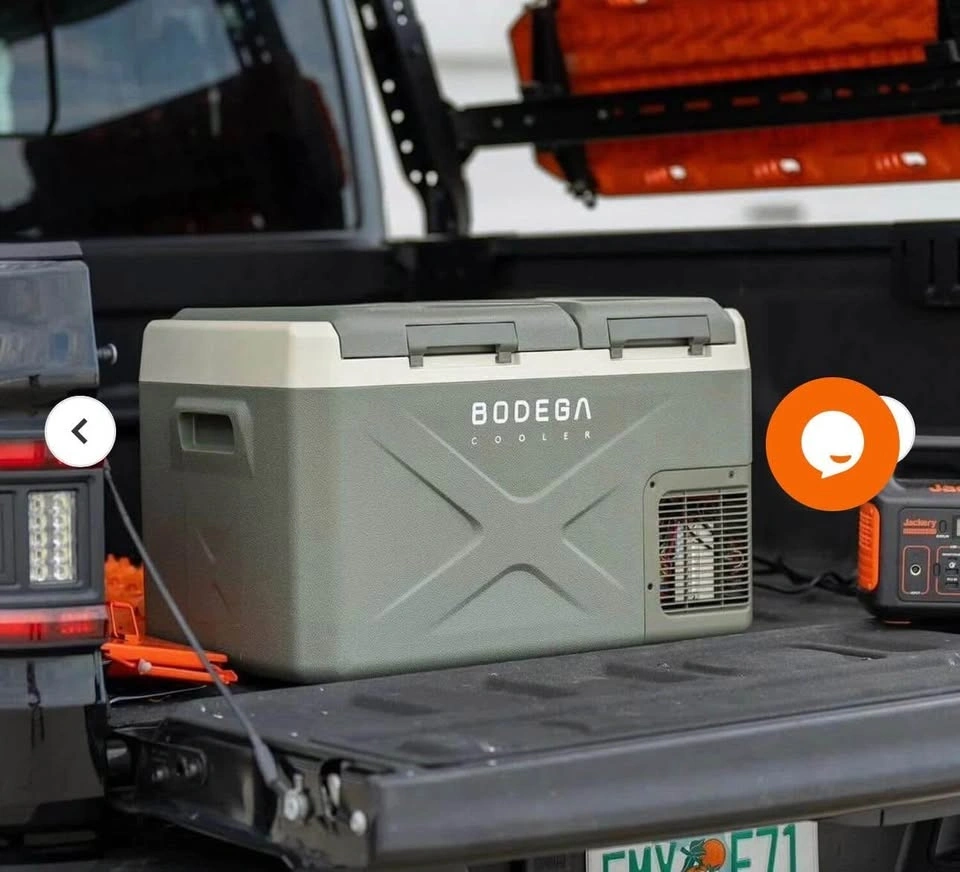 Brand new BODEGA 42Qt Portable Car Fridge Freezer (Green). Dual zone design – fridge & freezer in one. Works on 12V/24V DC or 110V AC. App-controlled, energy-efficient, and super quiet. Perfect for camping, road trips, or RVs!