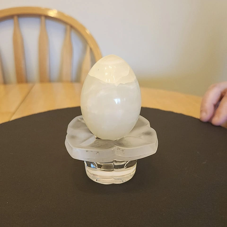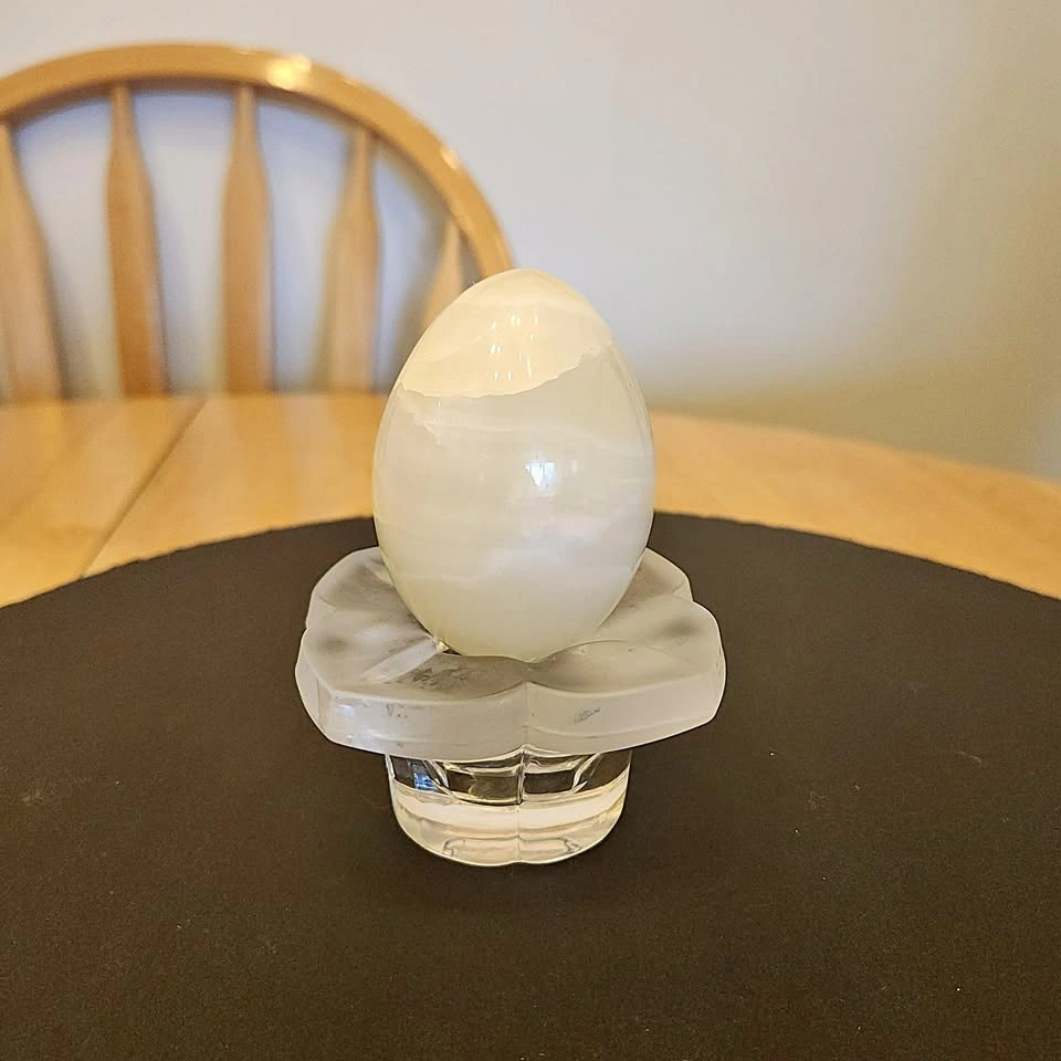 Solid onyx carving in an egg shape. Onyx is said to be a protective and grounding stone, bringing calm to you and the environment. As home decor it may help to infuse your living space with the same attributes.