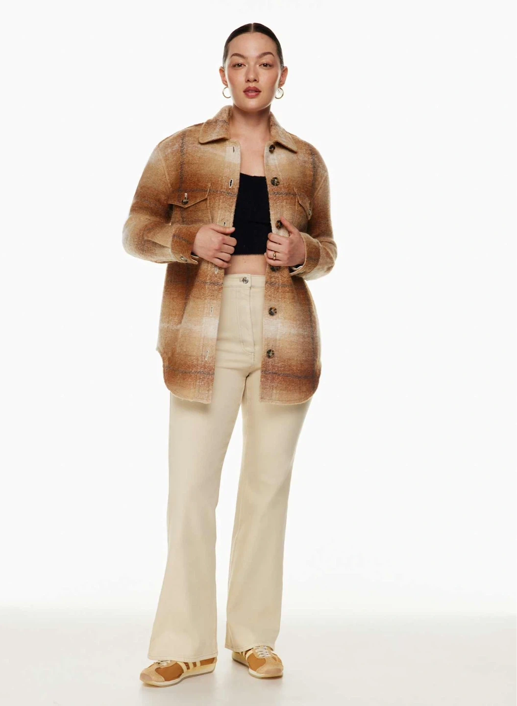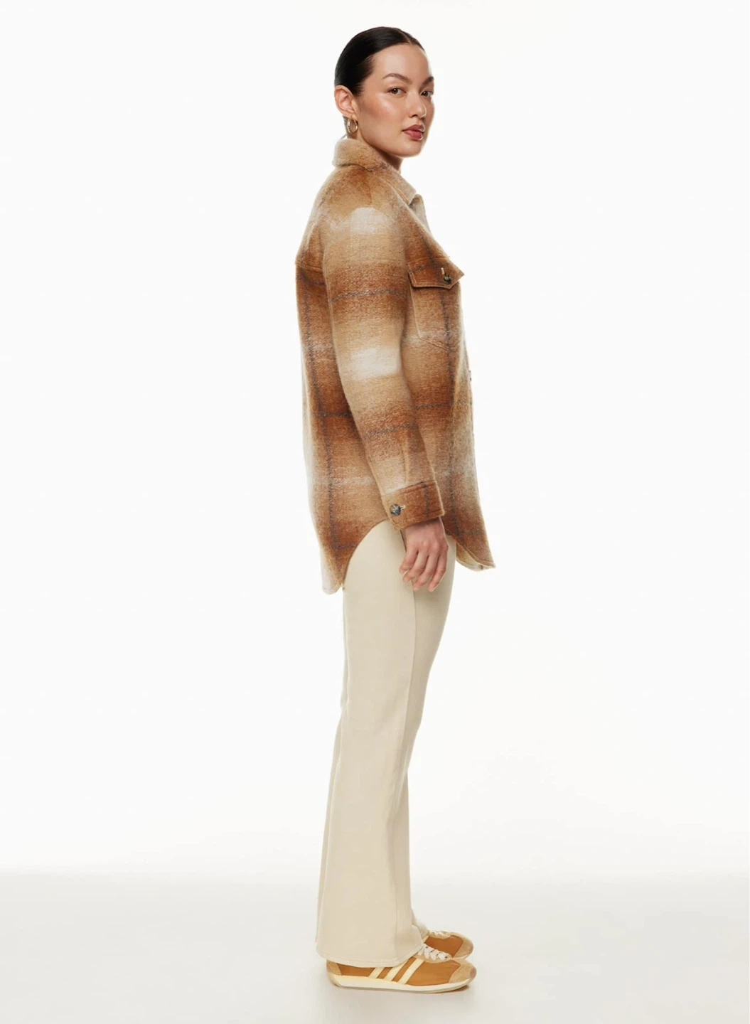 Keep your jacket on. Inside, outside — everywhere. A Wilfred Free classic beloved for its relaxed silhouette and all-season versatility, The Ganna™ delivers the relaxed silhouette of a shirt with the warmth of a jacket, transcending the typical rules of indoor/outdoor style. It's crafted with dropped shoulders, patch pockets and a rounded hem for throw-over-anything ease. It's tailored with warm and luxurious felted wool from Italy. This version comes in a yarn-dyed plaid pattern that's been woven in, as opposed to printed on, for a more dimensional look.