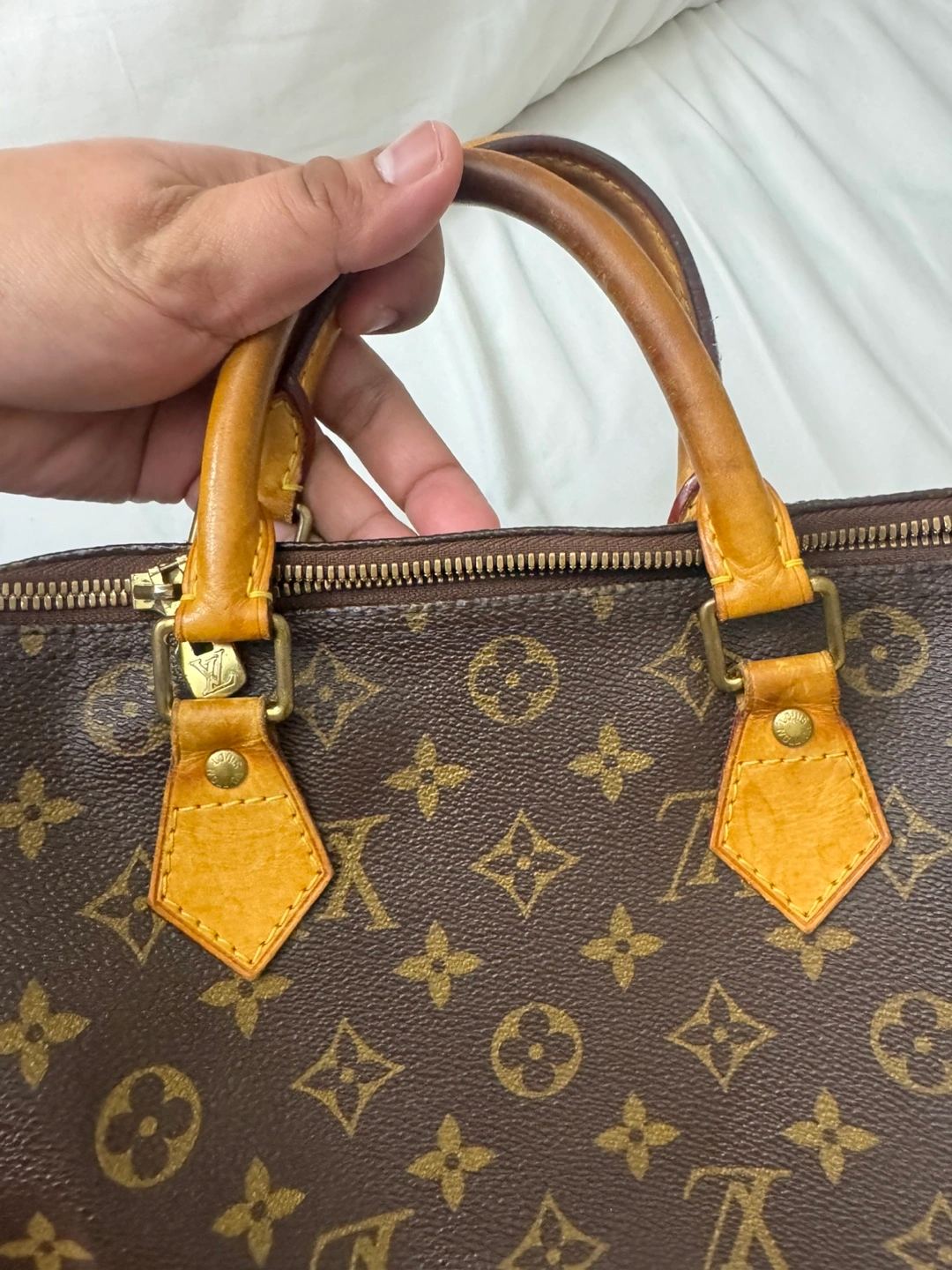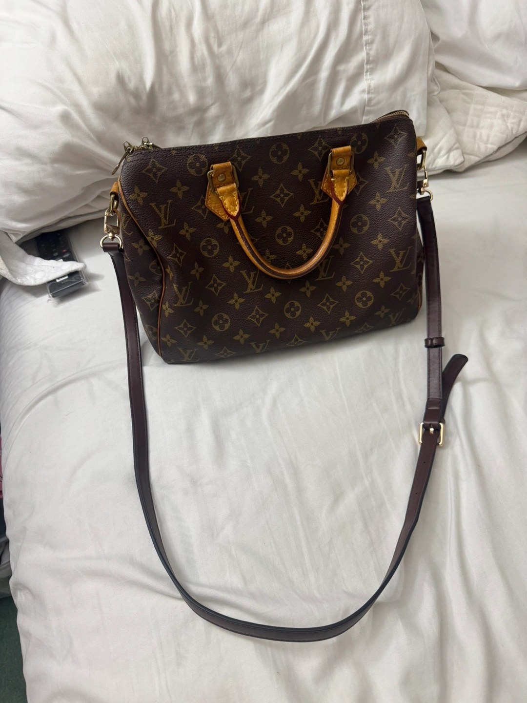 Classic Louis Vuitton Bandoliere 30 handbag in iconic Monogram canvas. Made in France. Leather trim and handles show some signs of wear. Zipper functions smoothly. A timeless piece for everyday use! Doesnt come with the original sling strap but i have a generic brown leather strap that i can include if needed. No other inclusion. Still in good shape but have water stain on vacheta. Authenticated by pro authenticator
