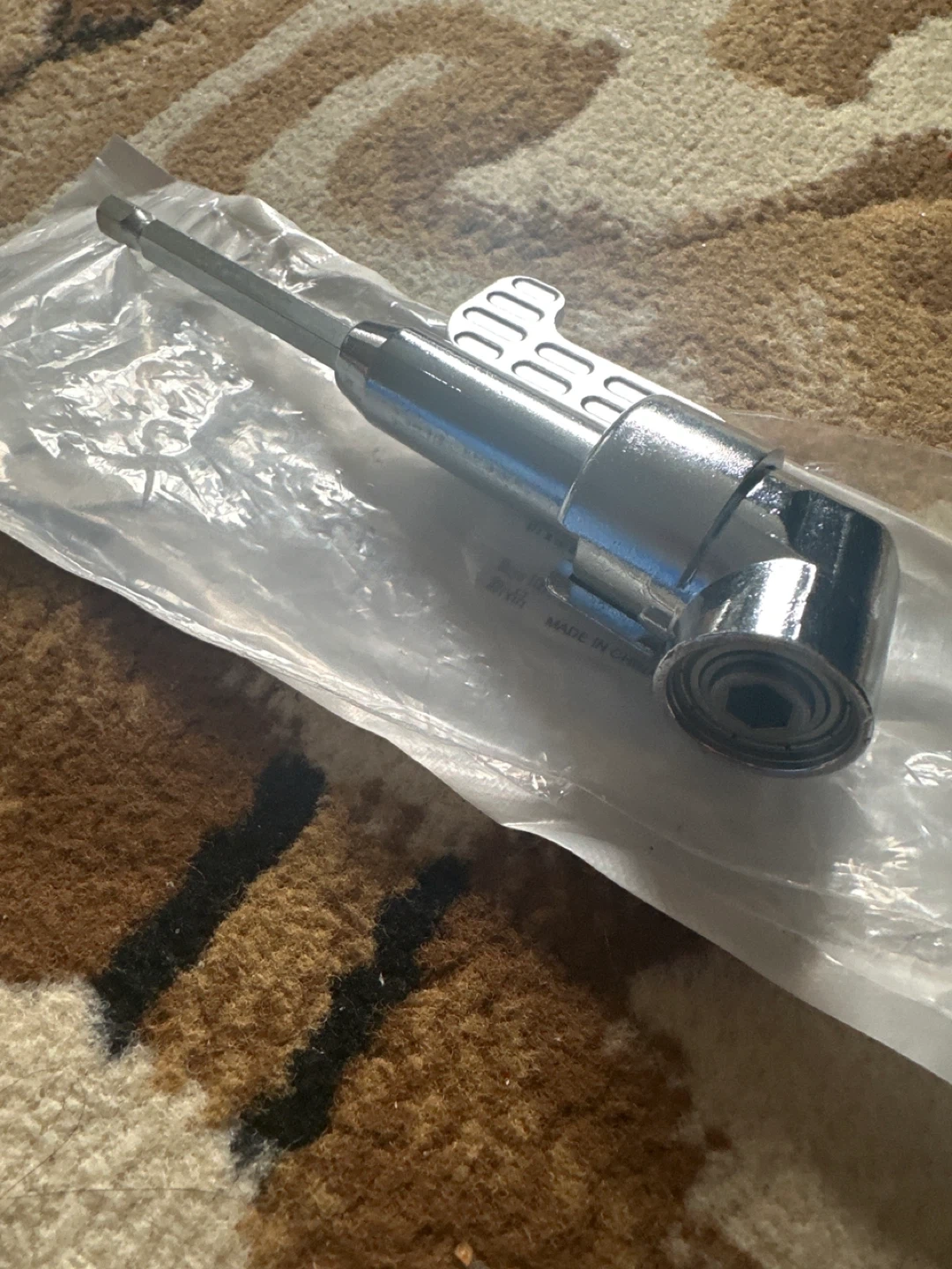 This right angle drill driver adapter is perfect for tight spaces. It's made of metal and designed for use with drills. Get into those tricky spots with ease!