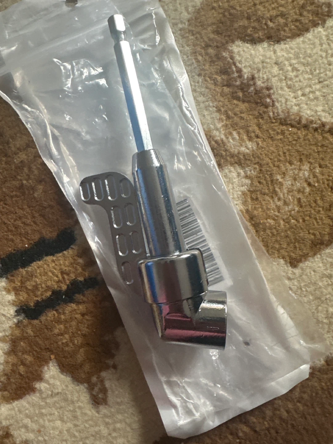 This right angle drill driver adapter is perfect for tight spaces. It's made of metal and designed for use with drills. Get into those tricky spots with ease!