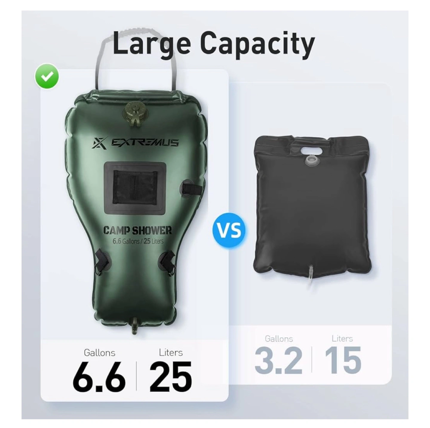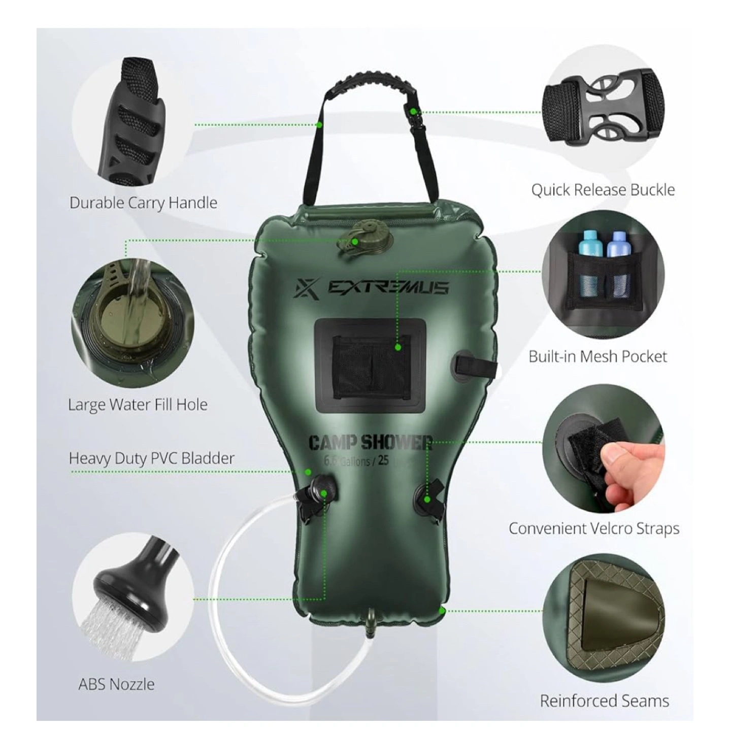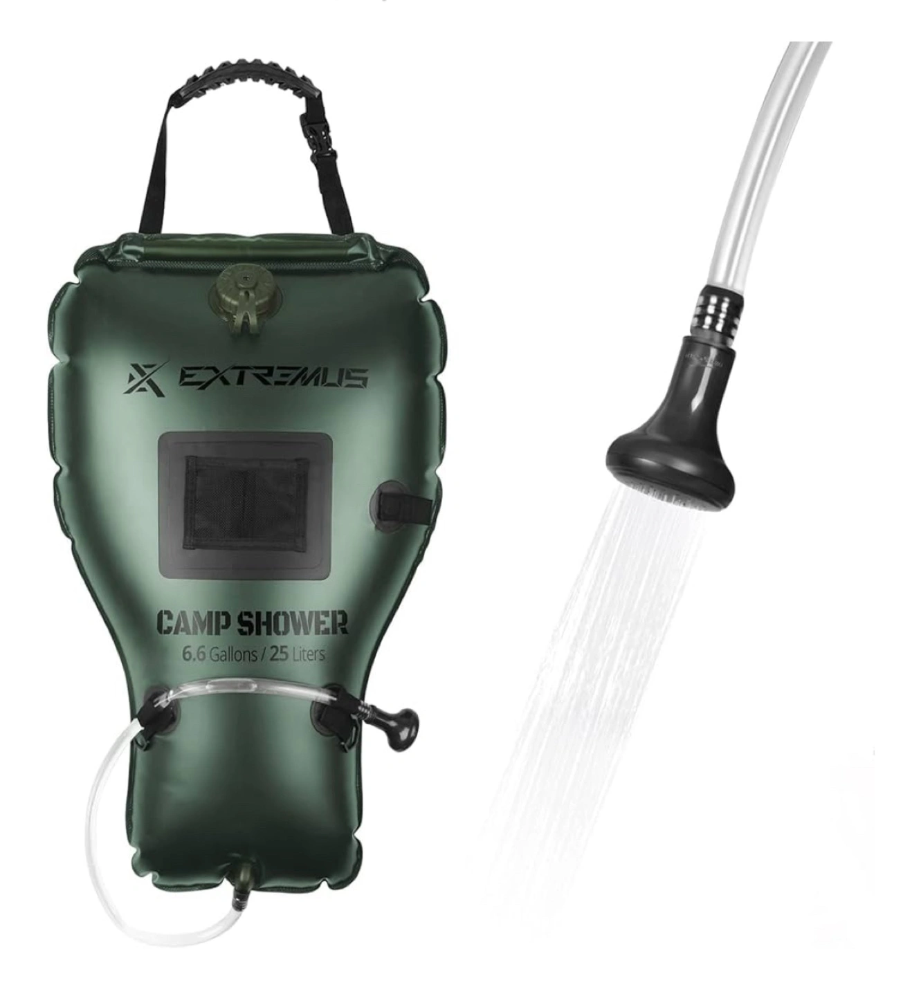 Extremus Rainbow Falls Camping Shower, 6.6 Gallons/25L Camp Shower Bag, Solar Heating PVC Bladder, Built in Thermometer, Mesh Pocket, ABS Nozzle System, Portable Solar Shower for Camping