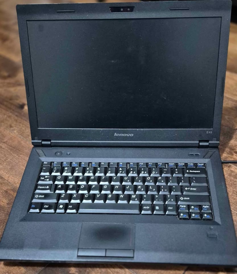 Black Lenovo E49 laptop (Model: 3464) available. It has many cool stickers on the lid. The bottom has some scuffs and scratches from normal use. The keyboard and screen are clean. Good for everyday light tasks or school. The battery lasts around 30 minutes, so you need to keep the charging cable connected. It has Chrome OS Flex installed for smoother performance.