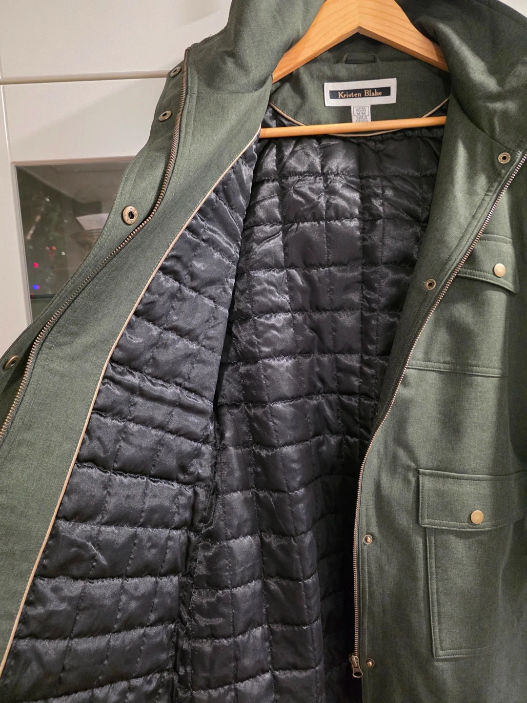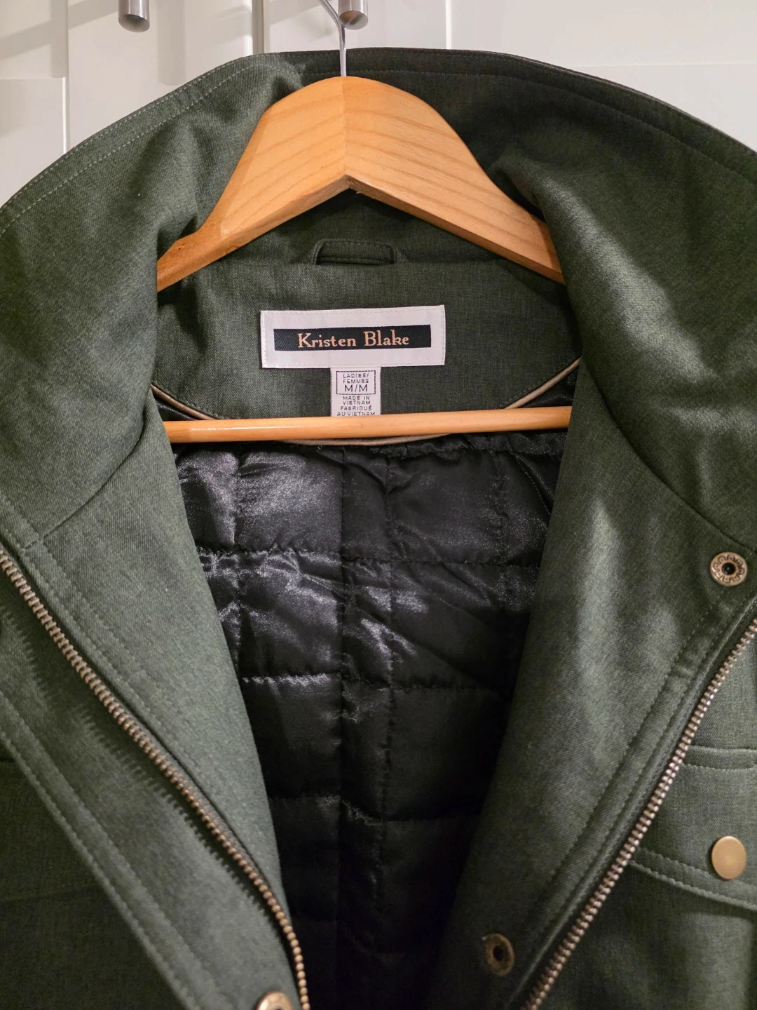 Kristen Blake coat in a lovely olive green colour. It's a size M and in brand new condition , never worn .The interior is lined with a quilted black material, making it nice and warm for our Canadian weather!