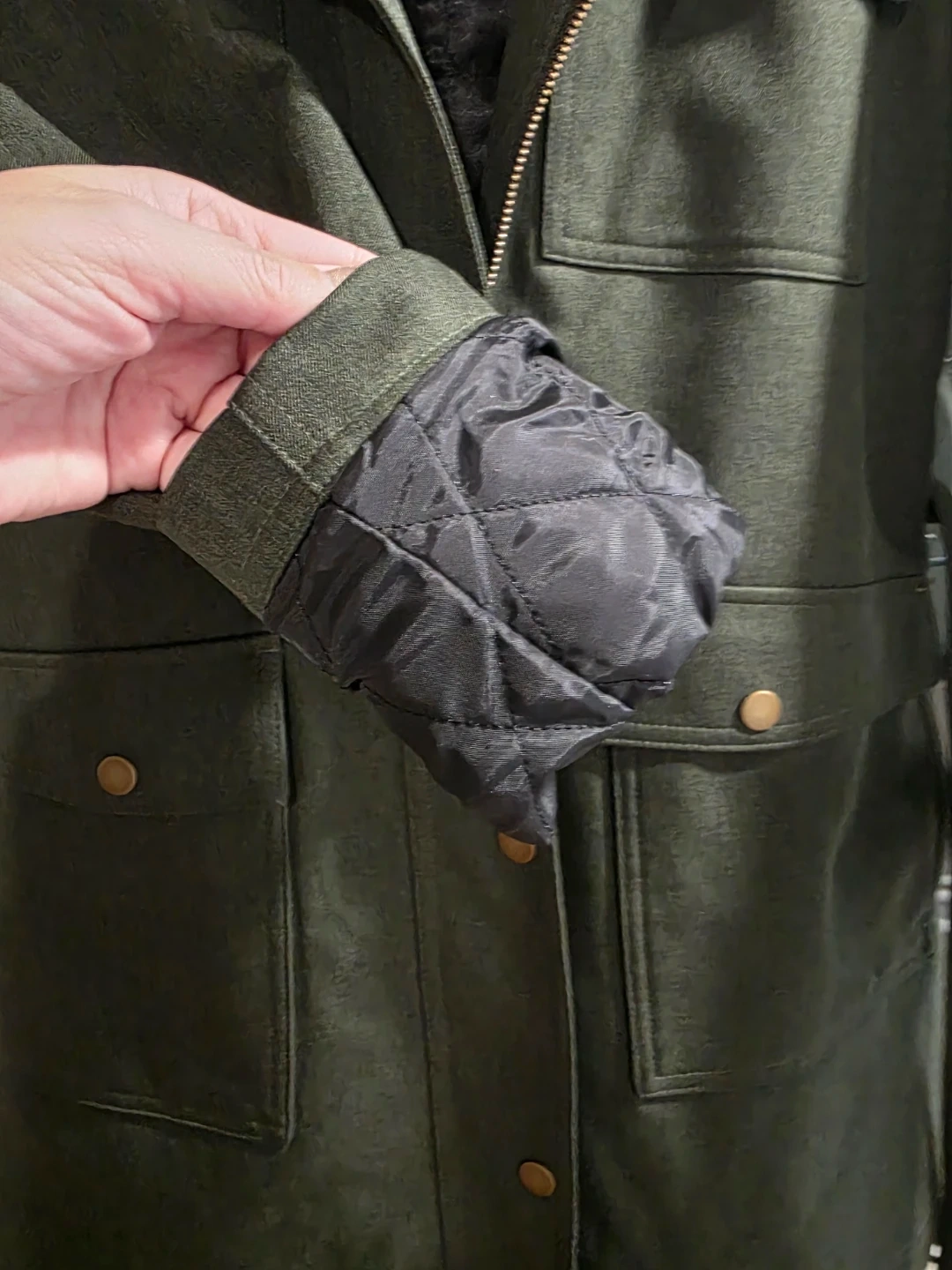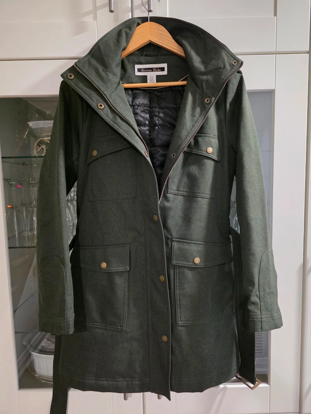 Kristen Blake coat in a lovely olive green colour. It's a size M and in brand new condition , never worn .The interior is lined with a quilted black material, making it nice and warm for our Canadian weather!