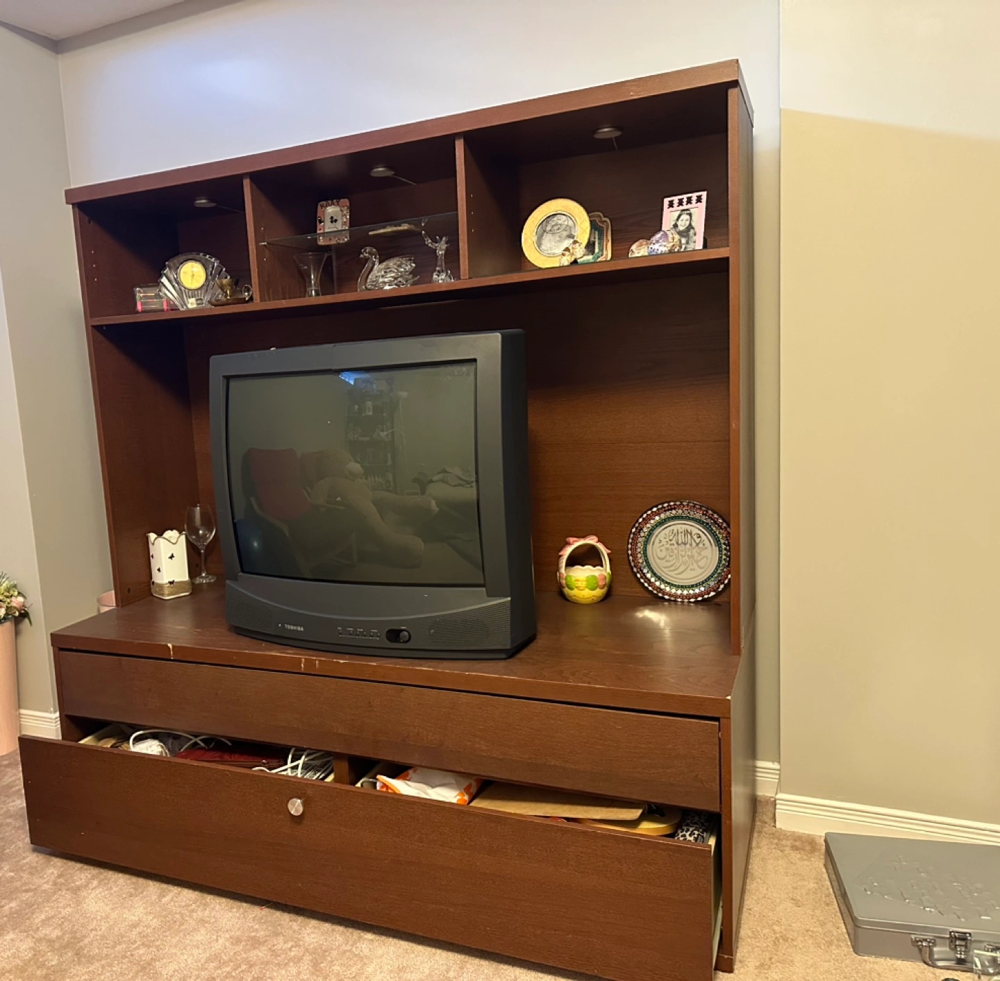 Storage combination provides a home for your tv and storage for the gadgets you need for all the activities around it