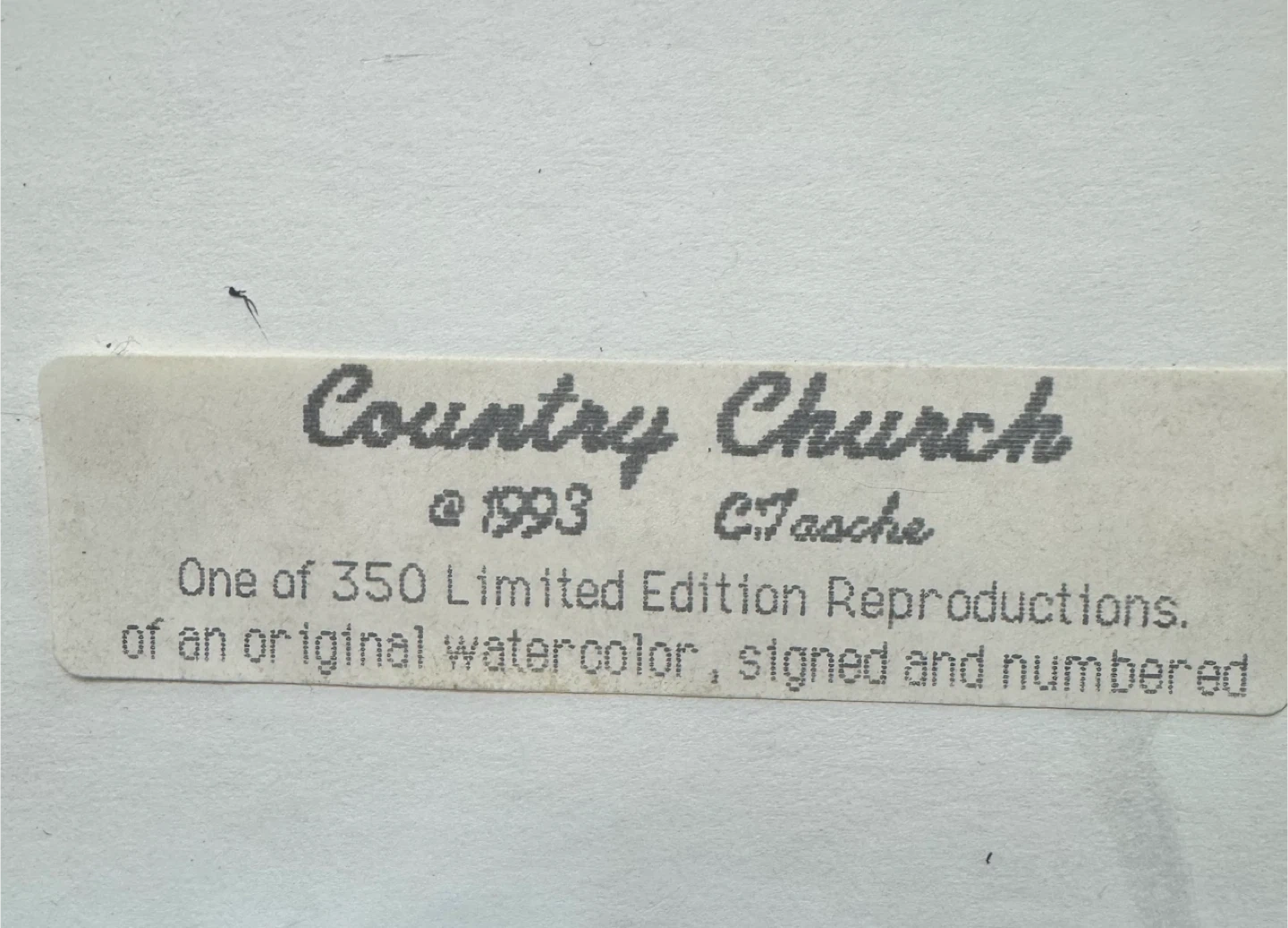 Selling a beautiful framed print by Saskatchewan artist Cyndi Tasche! This piece, titled "Country Church," is a limited edition reproduction (67/350) of an original watercolor, signed and numbered by the artist. A lovely addition to any home!