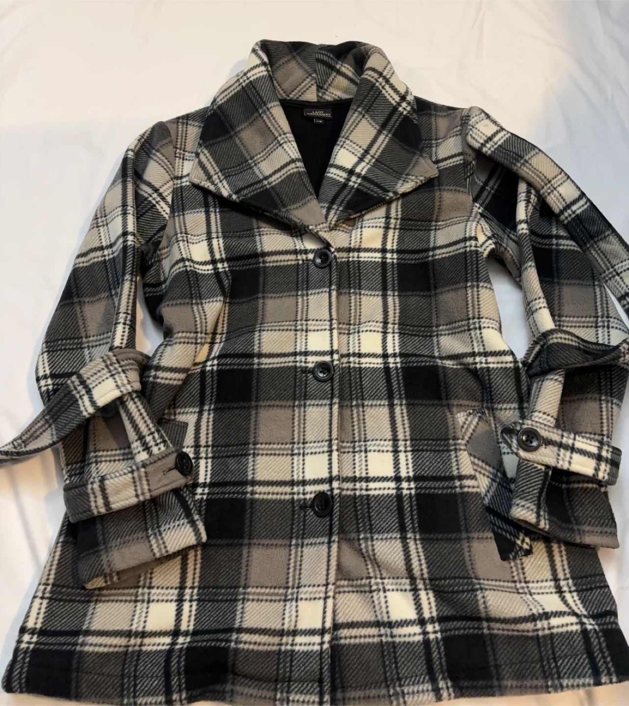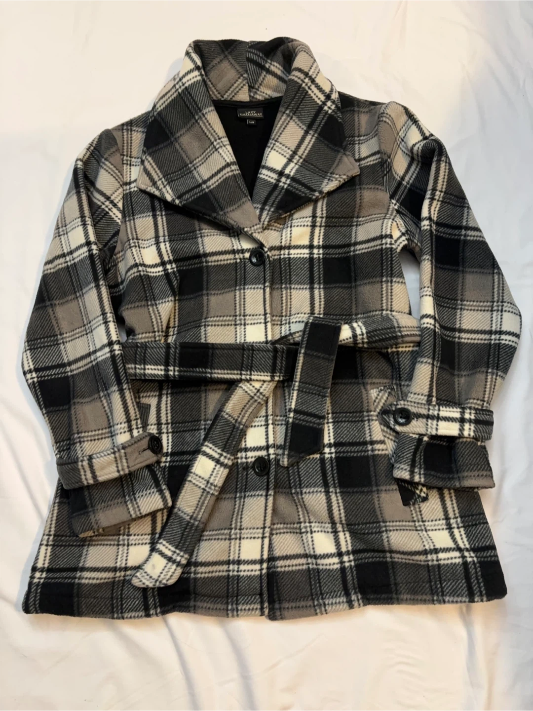 Lady Hathaway Jacket - Size L. Please note dirt mark on belt as shown in photo. $20 cash, porch pick up Kennedy and Eglinton.