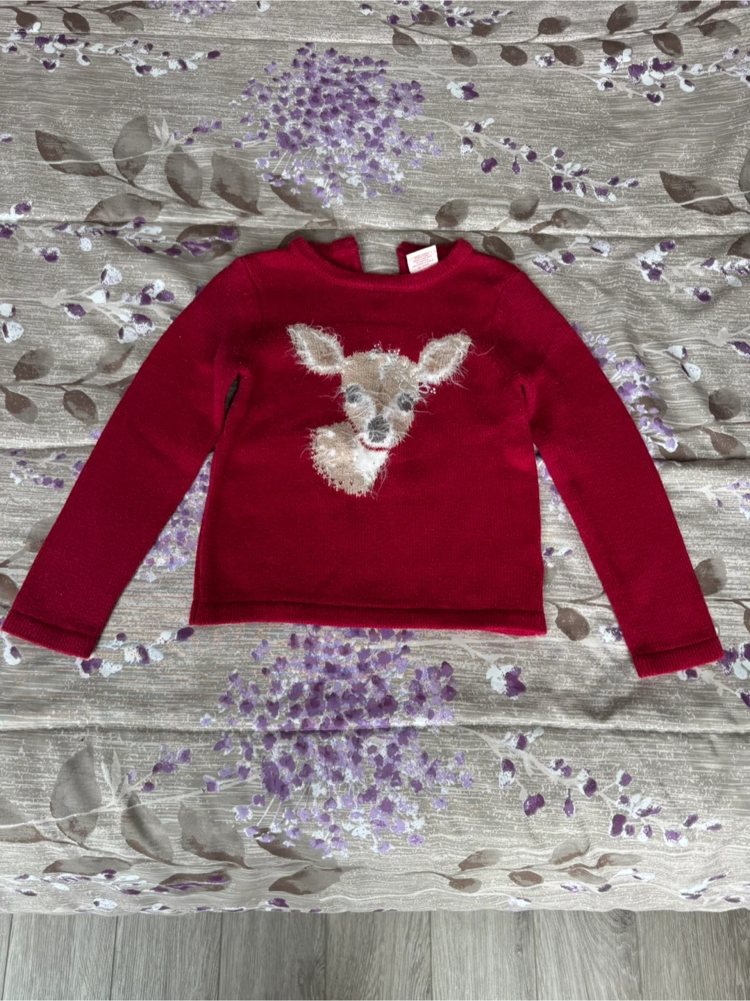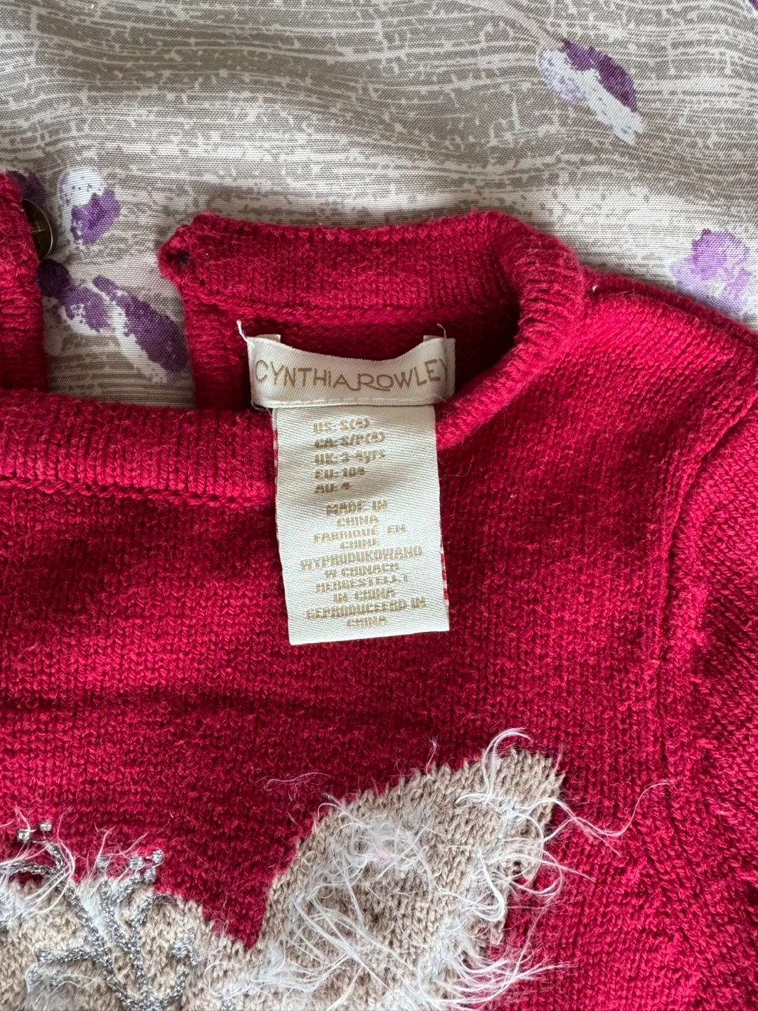 10A cute Cynthia Rowley sweater for your little one! It's a size 3 (2-4 years). The sweater is red and features a sweet deer design. The material is 60% cotton and 40% acrylic