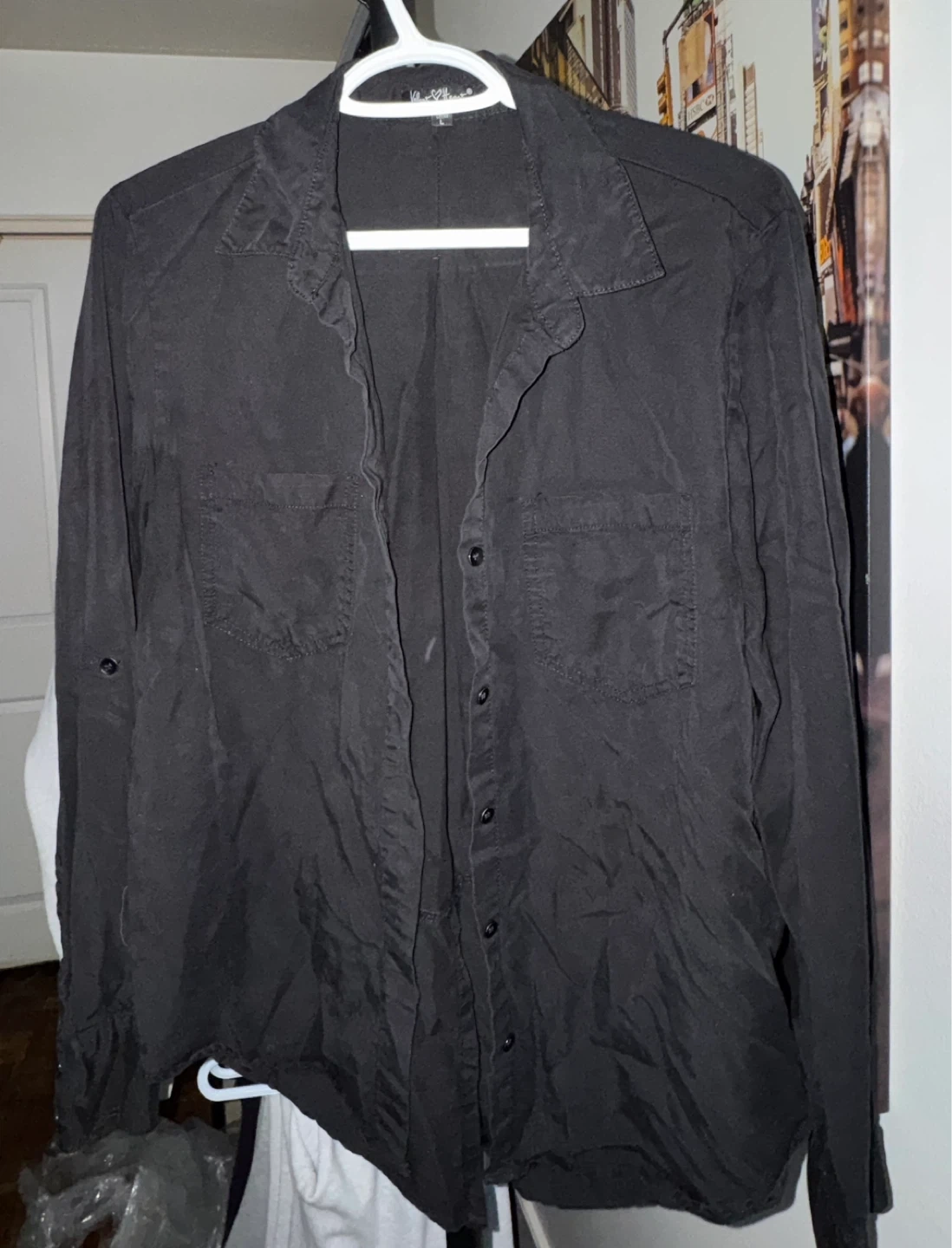Selling a black button-up shirt from Velvet Heart in size L. It's in great condition and ready for a new home!