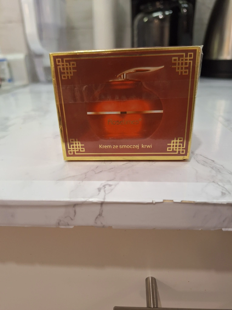 New, sealed jar of RoseTime Dragon's Blood cream. Red and gold packaging. Appears to be a rich, luxurious cream.