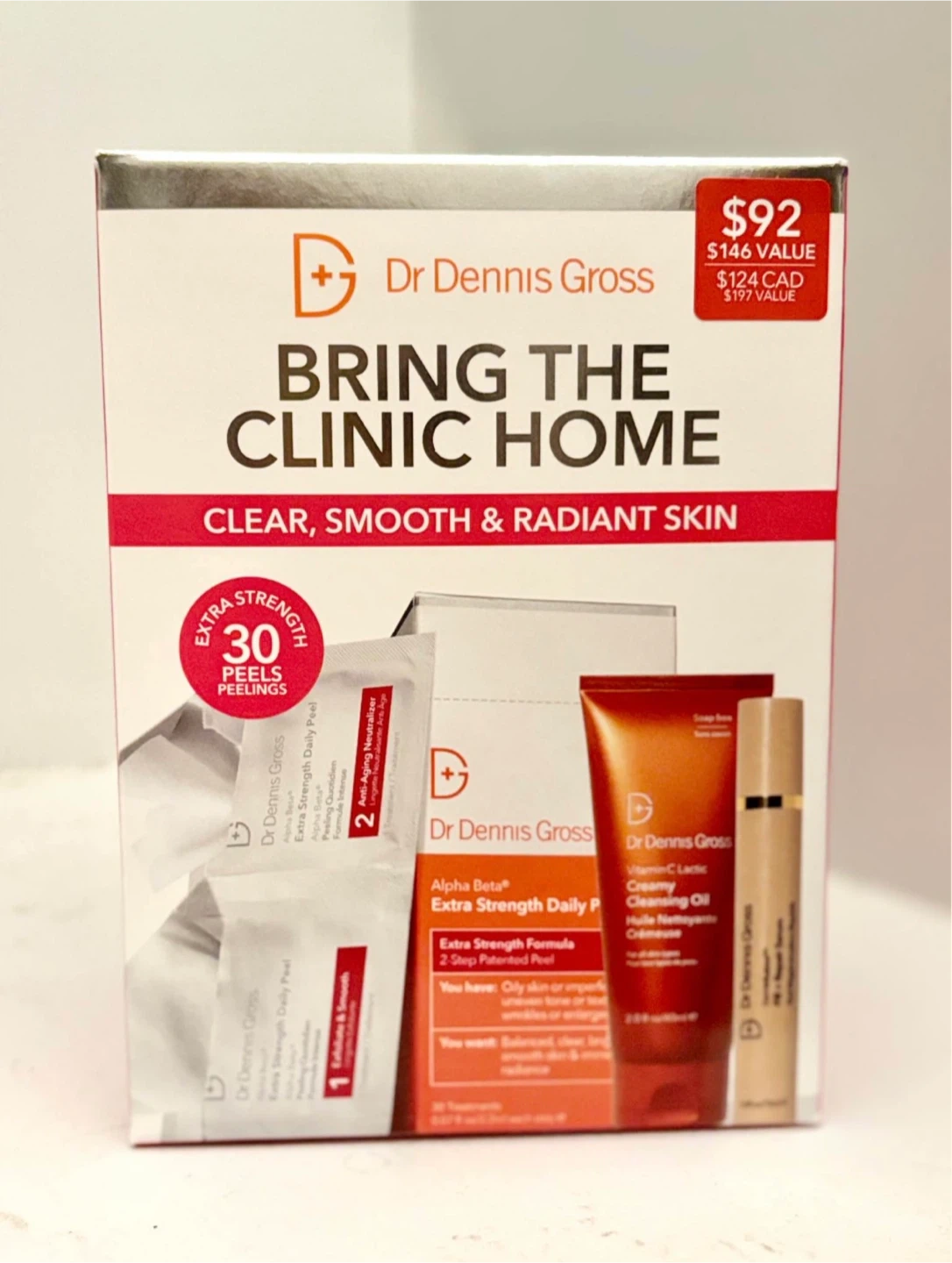 This Dr. Dennis Gross kit comes with 2 x 30 extra strength peels treatment, the Alpha Beta Extra Strength Daily Peel and the Alpha Beta Cleansing Oil. It's designed for clear, smooth, and radiant skin.