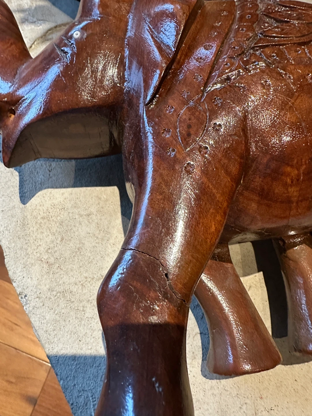 One leg has been glued but it’s barely noticeable and doesn’t affect the structure of the piece.