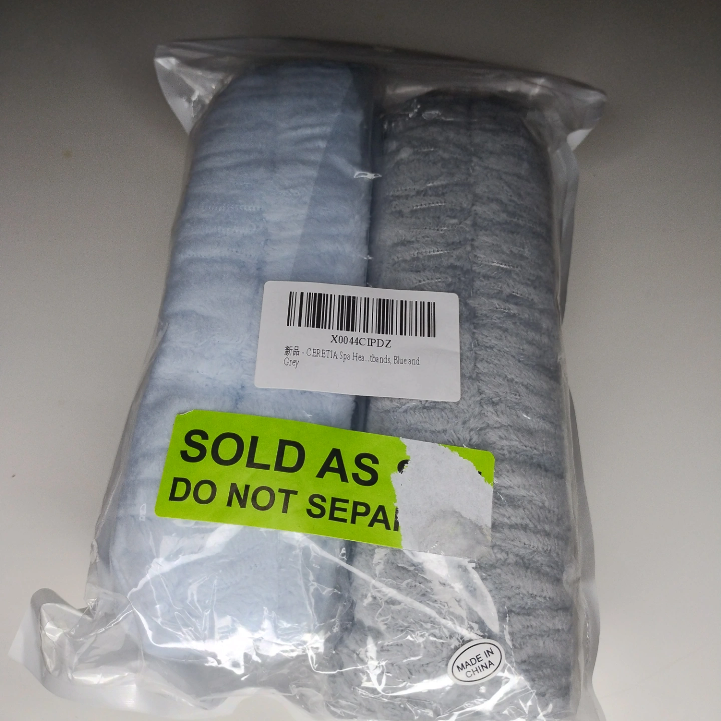 Two stretchy headbands sets. Grey and light blue. Great elasticity. Soft microfiber material. Sold as a pair. Do not separate.