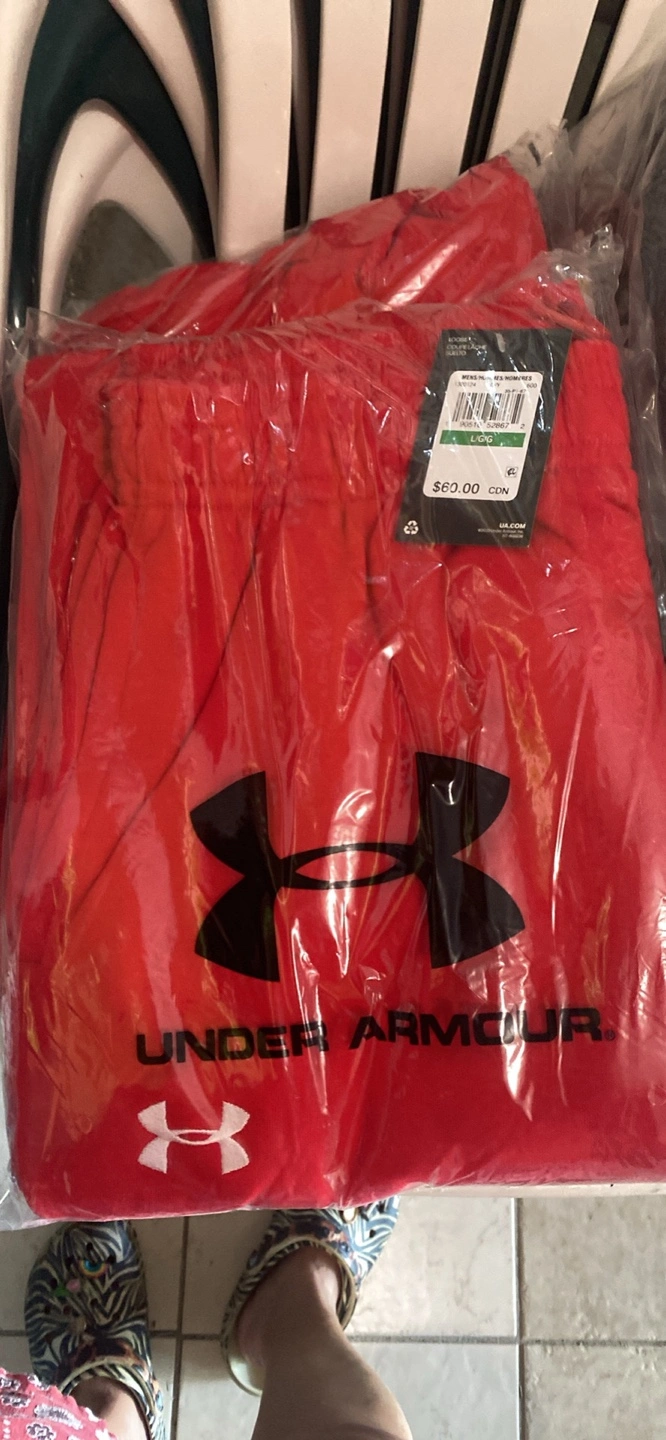 I'm selling new Under Armour sweatpants and sweathirts size large for the red and blue color and medium aize for the gray.They are still in the original packaging. Originally bought for $65 each.