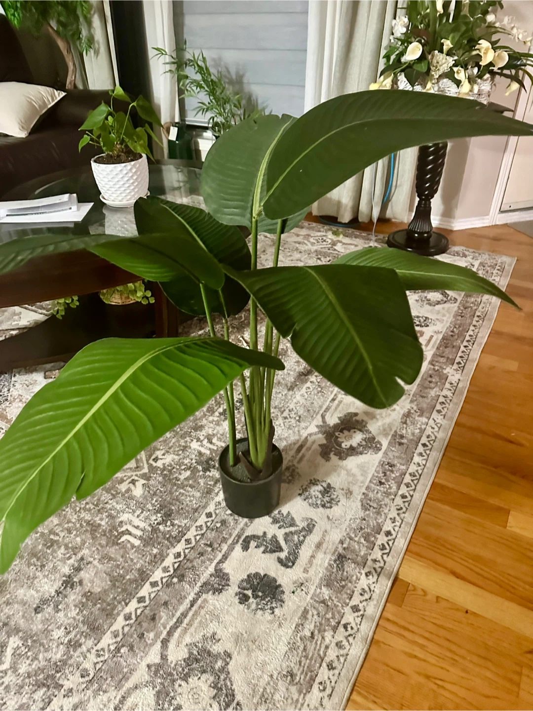 Selling a faux bird of paradise plant! It's in great condition and would look lovely in any home. The plant features large, vibrant green leaves that mimic the real thing, adding a touch of the tropics to your space without the upkeep