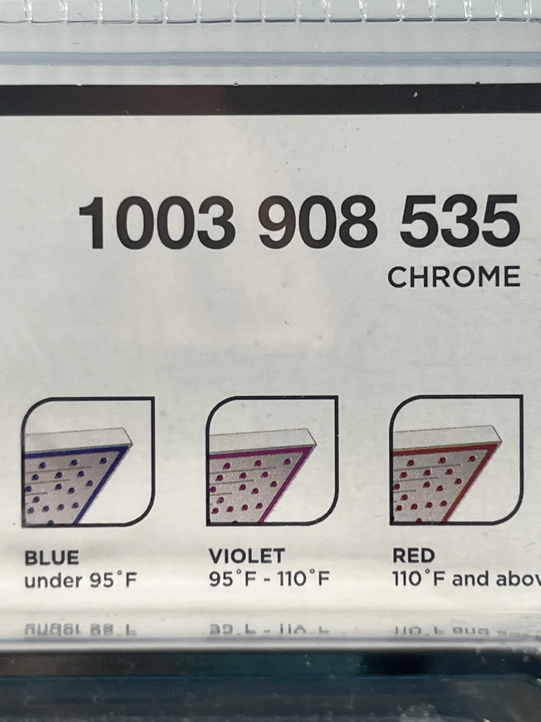 Temperature-Based LED Colors: The lights change from Blue (below 95°F) to Violet/Magenta (95–110°F) and then to Red (above 110°F).