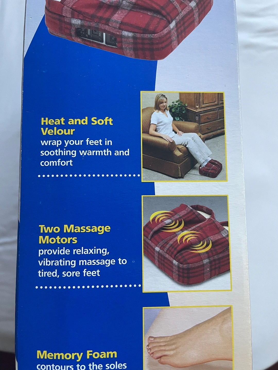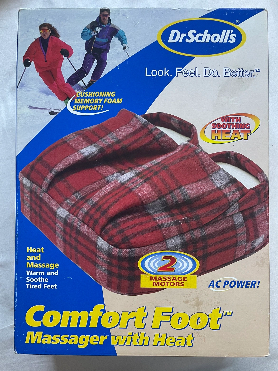 Dr. Scholl's Comfort Foot Massager with Heat. This massager has two vibrating motors and heats to warm and soothe tired feet.its brand new never used.