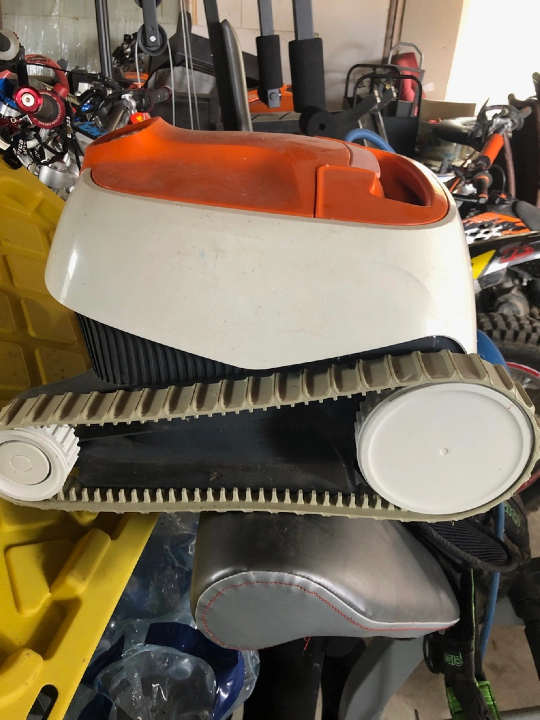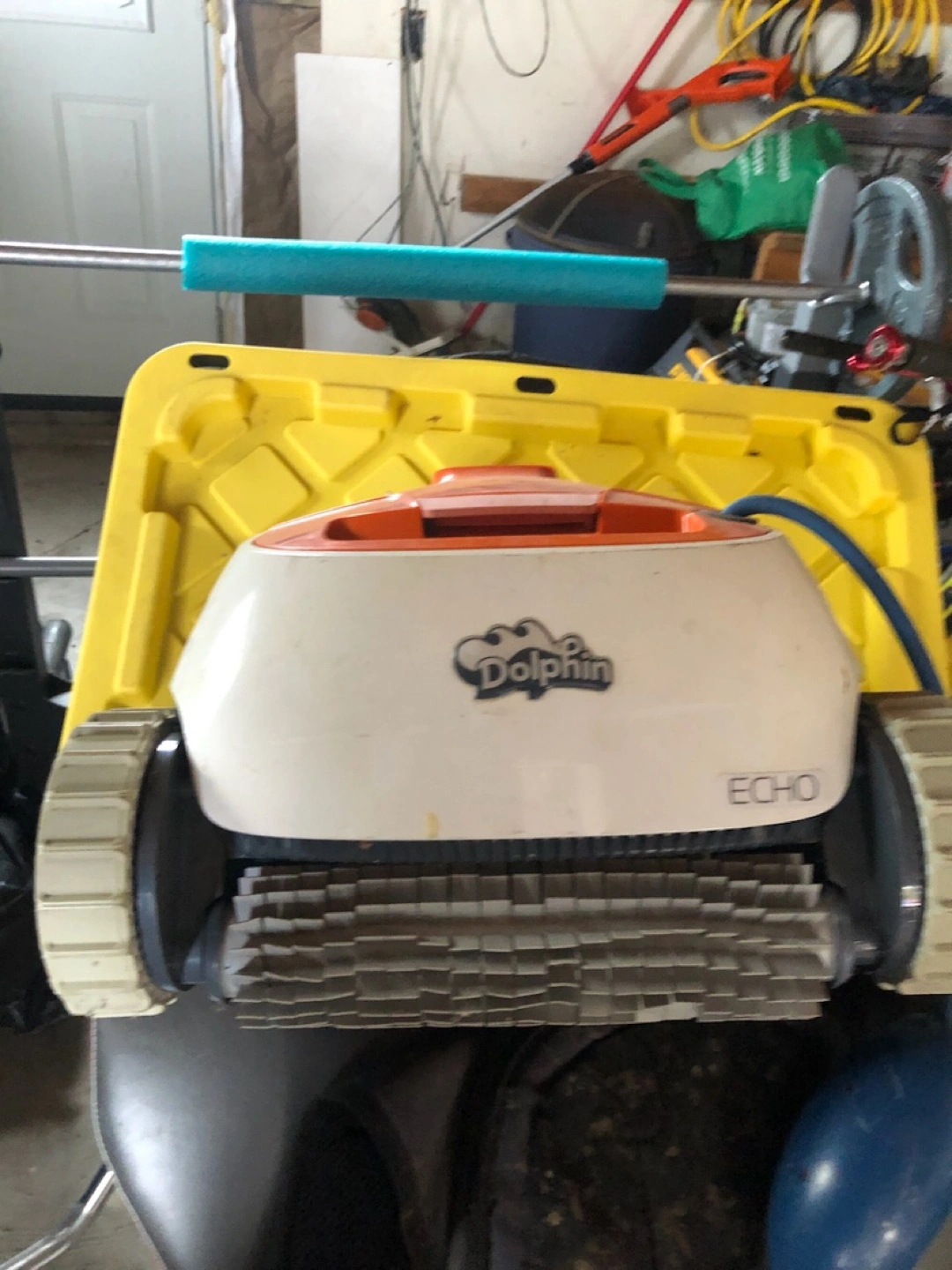 Already disassemble it comes with sand-filter/ ladder / pool skimmer and dolphin robotic pool vacuum