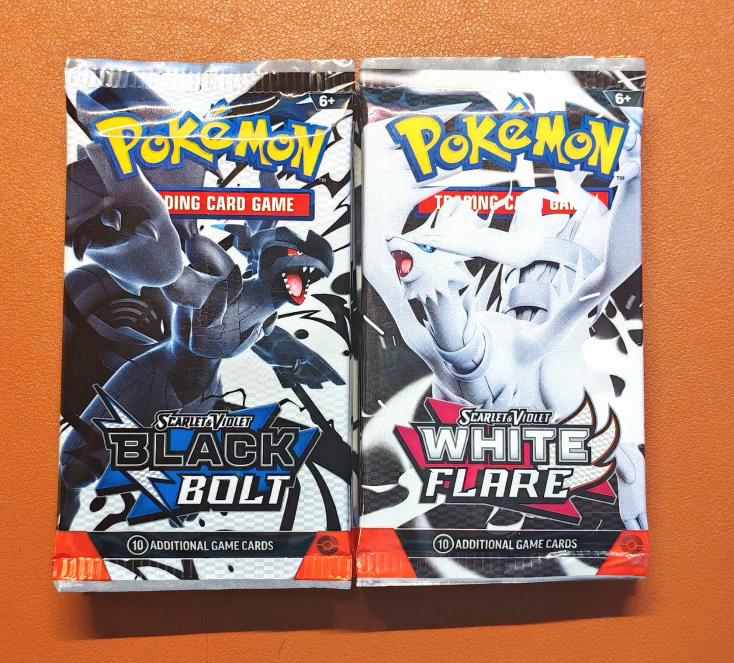 Pokemon TCG booster packs from the Scarlet & Violet series are up for grabs: Black Bolt and White Flare. Each pack contains 10 additional game cards.
