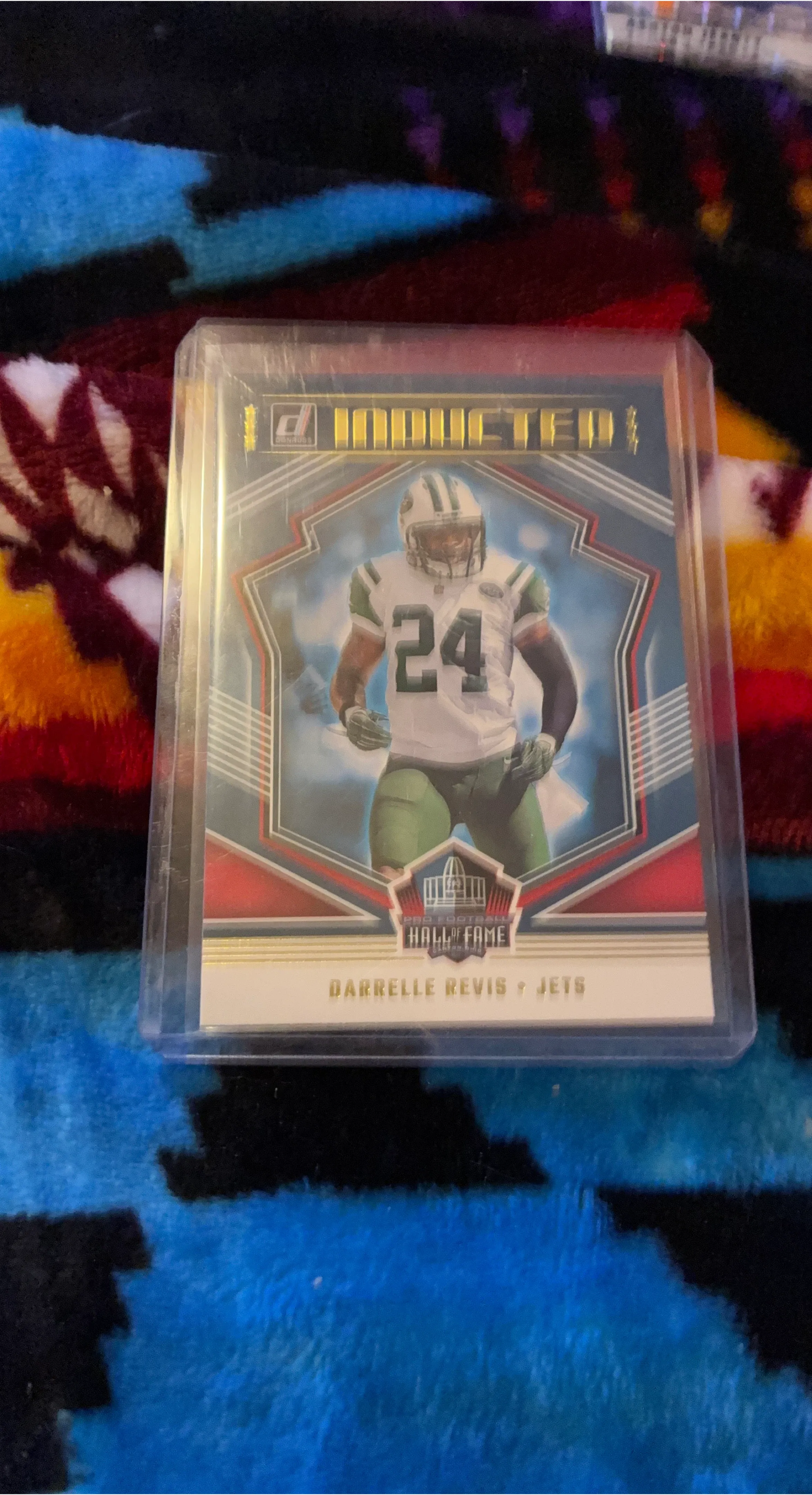 This is a 2021 Donruss Certified football card featuring Darrelle Revis. It's a Hall of Fame edition card. This collectible is a great addition for any football fan or collector.