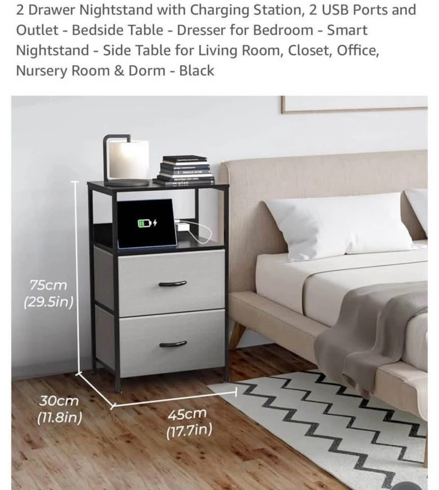 2 Drawer Nightstand w/ USB & Outlet