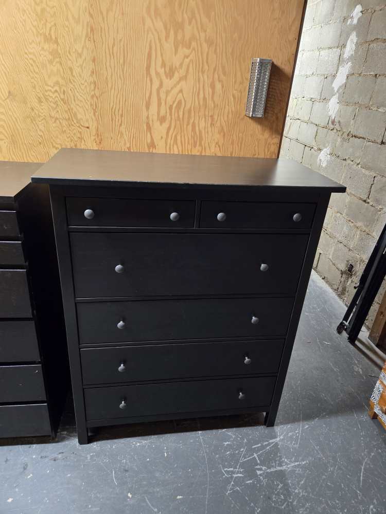 Selling a gently used IKEA Hemnes dresser in black.It has six drawers, providing lots of storage space. Perfect for organizing your clothes or other items!