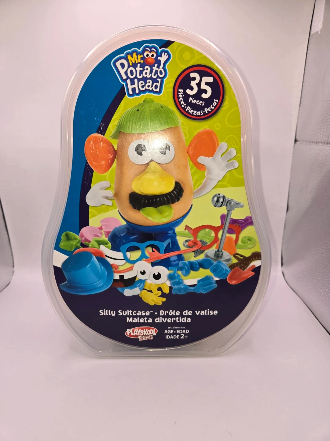 Mr Potato Head , comes with all pieces inside box except 1 piece the green tongue is missing. The total pieces inside box is 34. $ 25.00 Cash