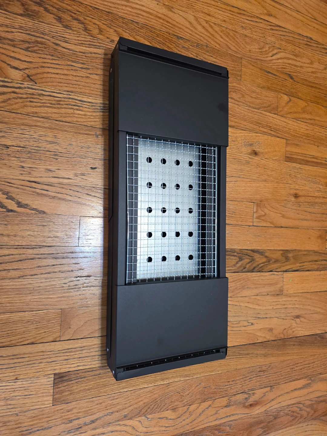 It's black and made of metal.