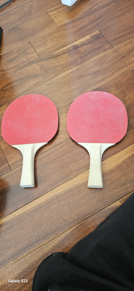 Never used ping pong rackets comes with table thing that you stick to both sides and then use it as a ping Pong table