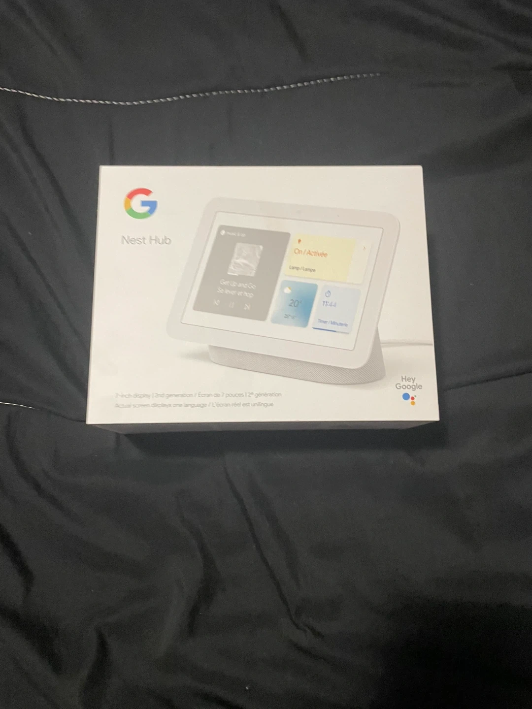 Google Nest Hub (2nd Gen) smart display. Features a 7-inch screen. It's great for controlling smart home devices, playing music, and getting information. Comes in original box.