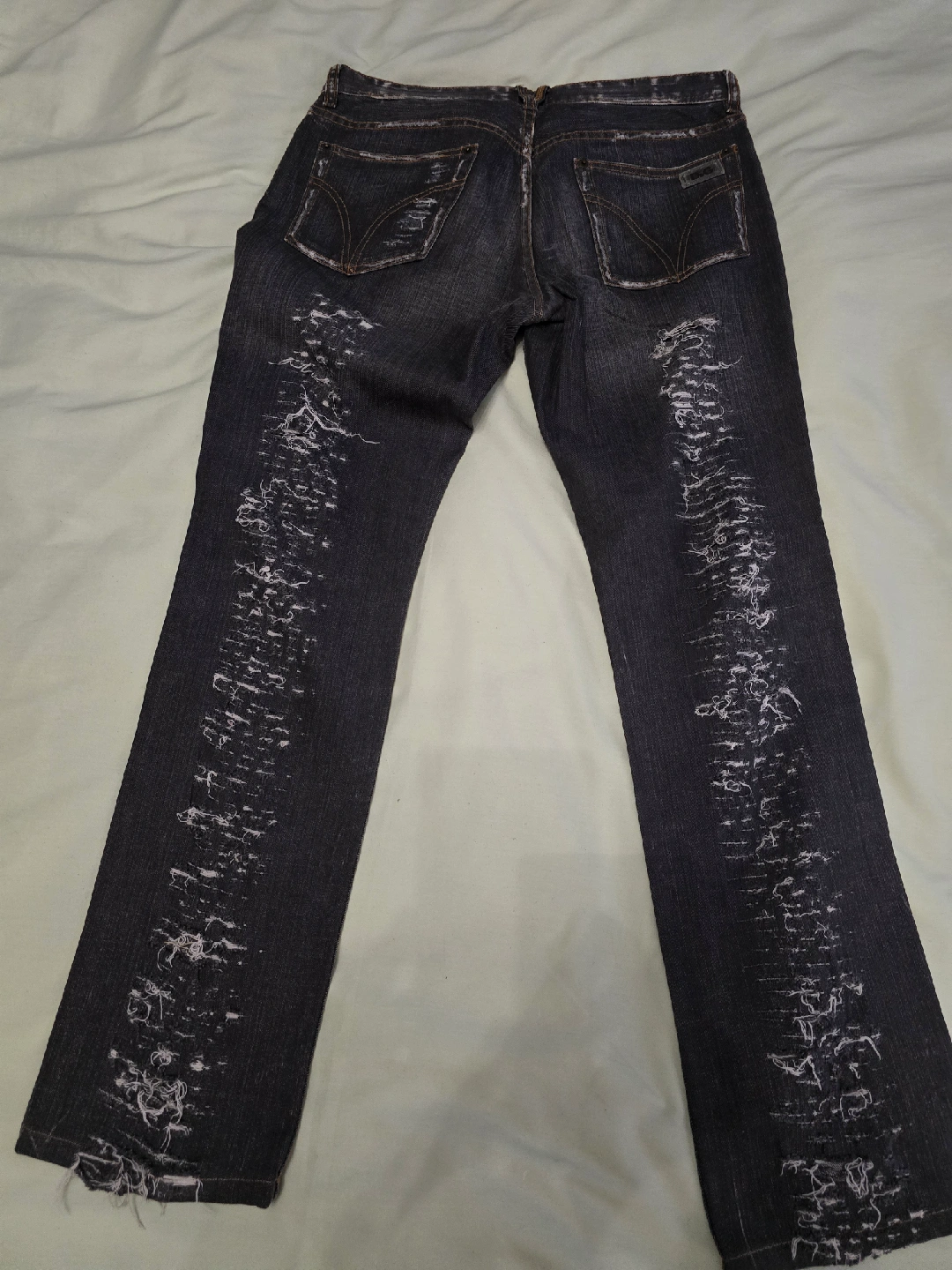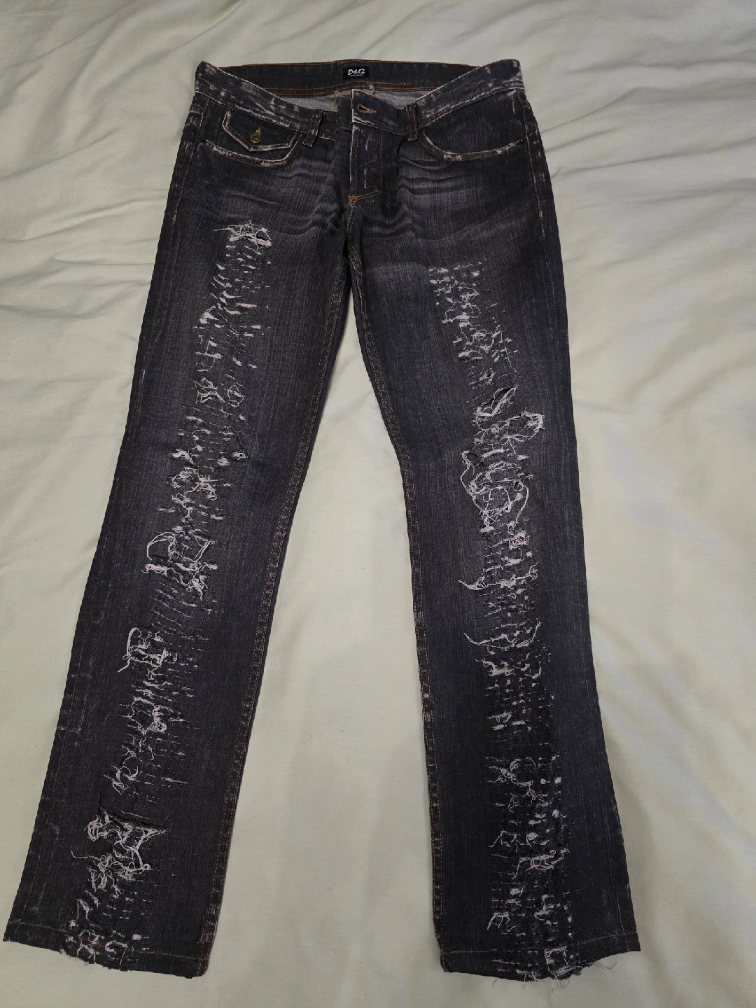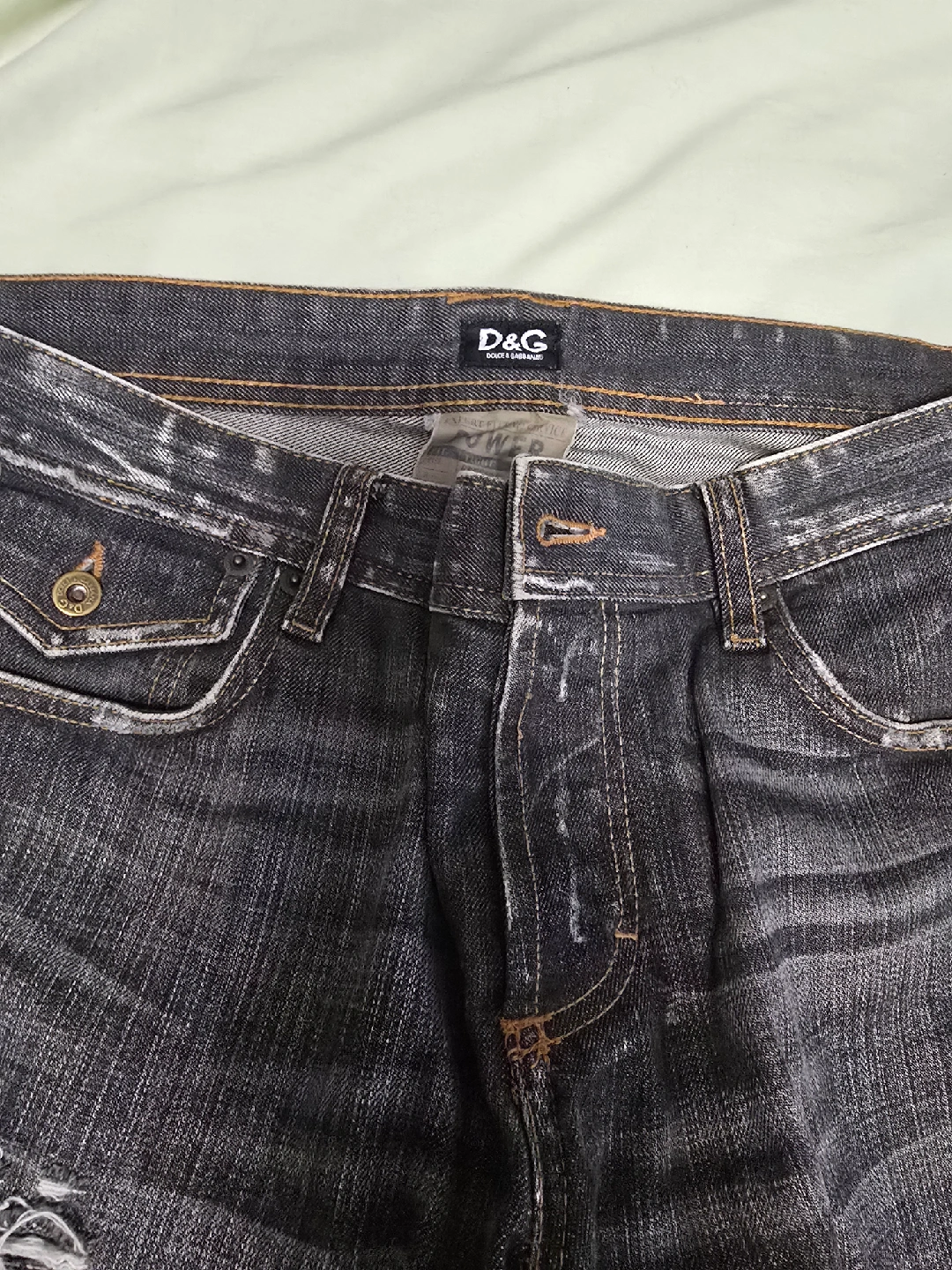 114Selling a pair of D&G jeans with a unique distressed design. They're in perfect condition and ready for a new home!