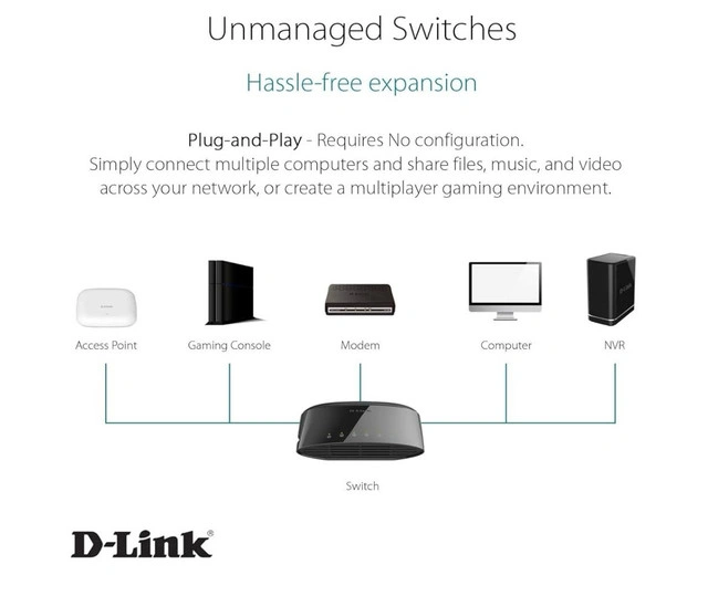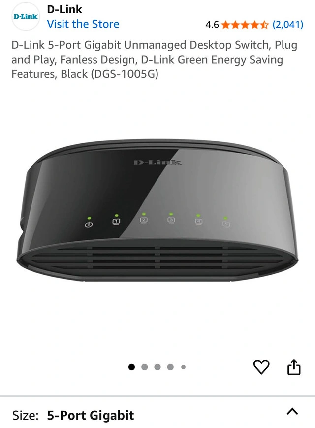 91Offering a used D-Link 5-Port Gigabit Unmanaged Desktop Switch, perfect for expanding your network with ease. This switch features a fanless design and D-Link Green energy-saving technology, ensuring silent operation and reduced power consumption. Though it's seen some action, it's ready to plug and play right out of the box. Additional specs include: * 5 high-speed Gigabit ports * QoS support * Compact design * Fanless design for silent operation * D-Link Green energy saving features And hey, just so we're clear, if you're seeing this ad, the switch is still up for grabs. Happy networking!