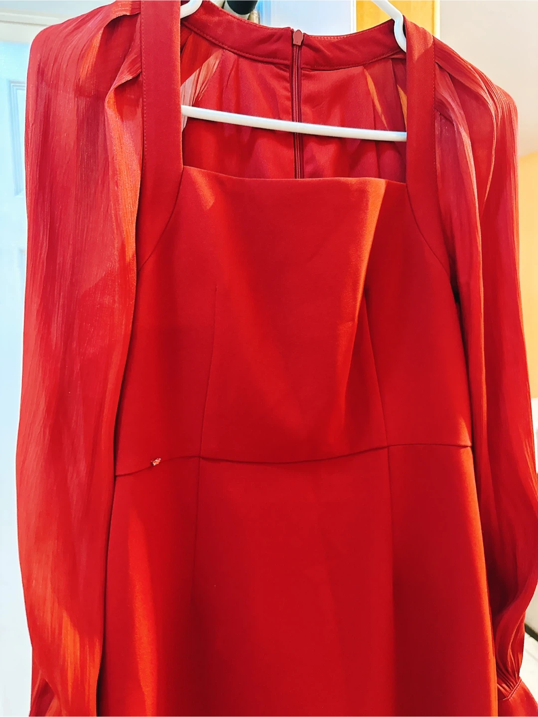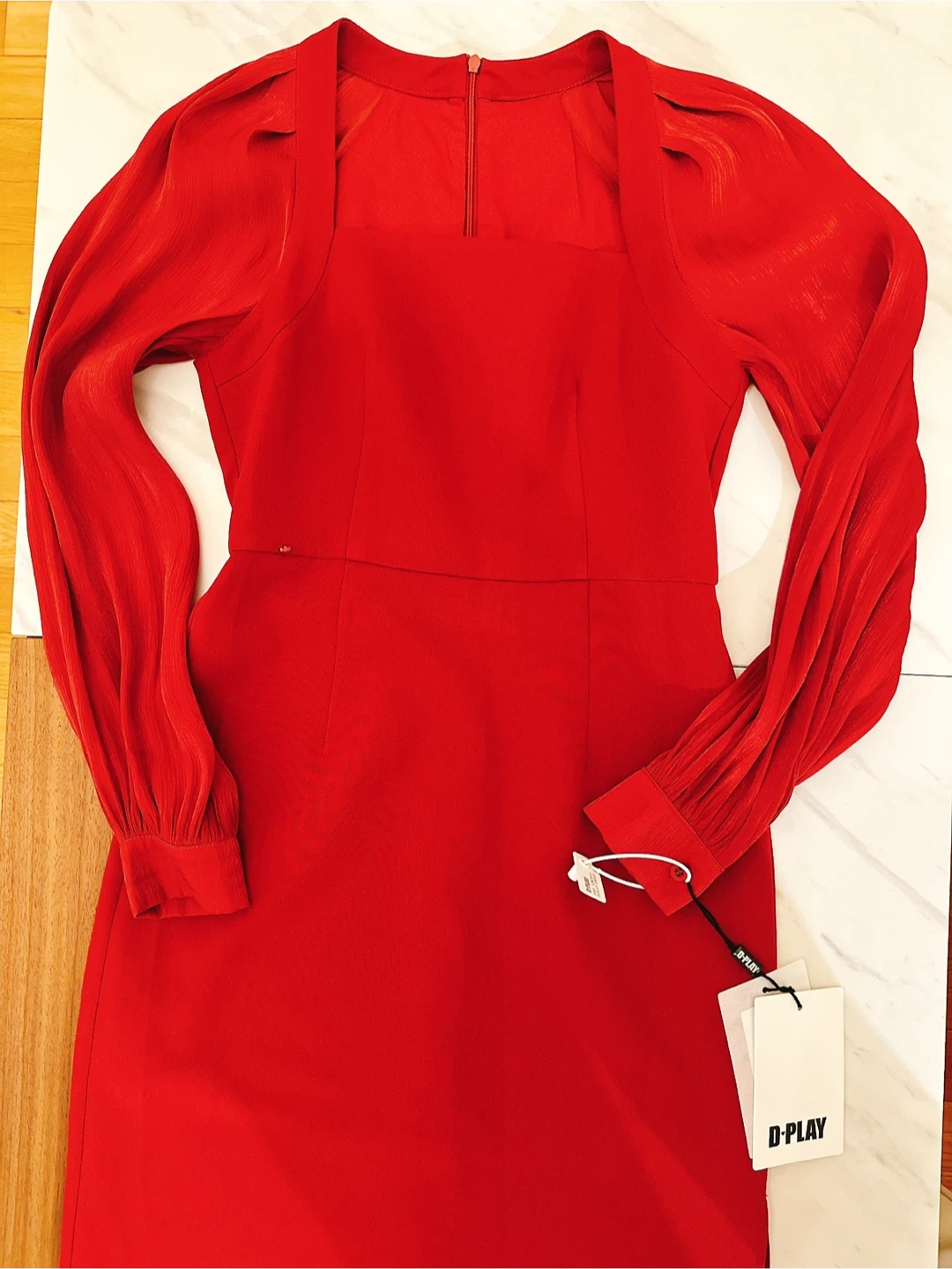 10Selling a beautiful red dress from D-PLAY! The dress features long sleeves and a square neckline. It's Brand New and ready for a new home Size:S (45KG-53KG)