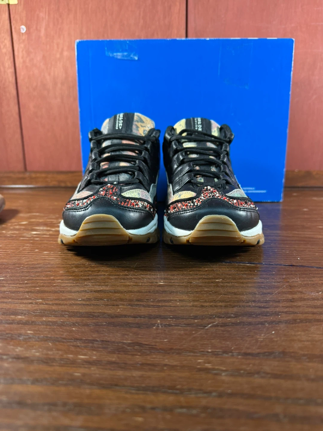 Step into style with these used Skechers Women's D'Lites Premium Heritage Limited Edition sneakers in size 9.5, offering both comfort and a unique aesthetic. These shoes feature a distinctive design, perfect for adding a touch of flair to your casual outfits.