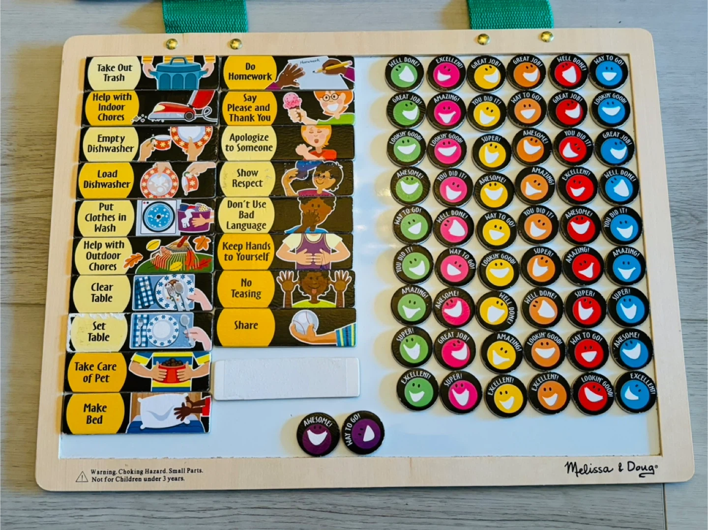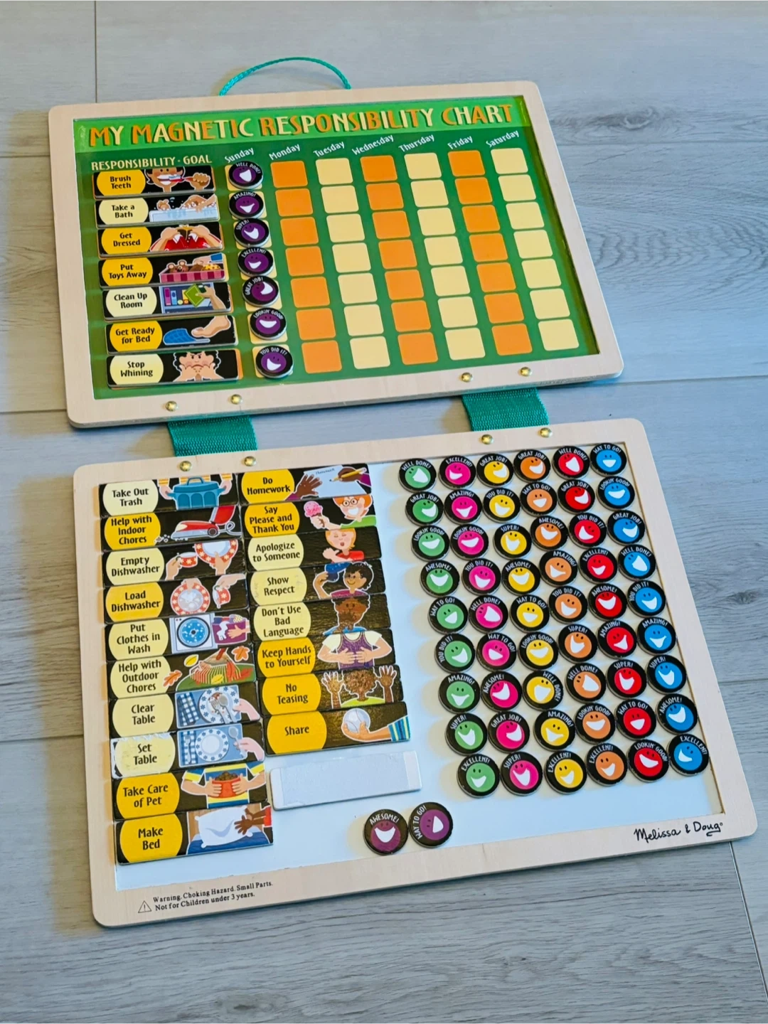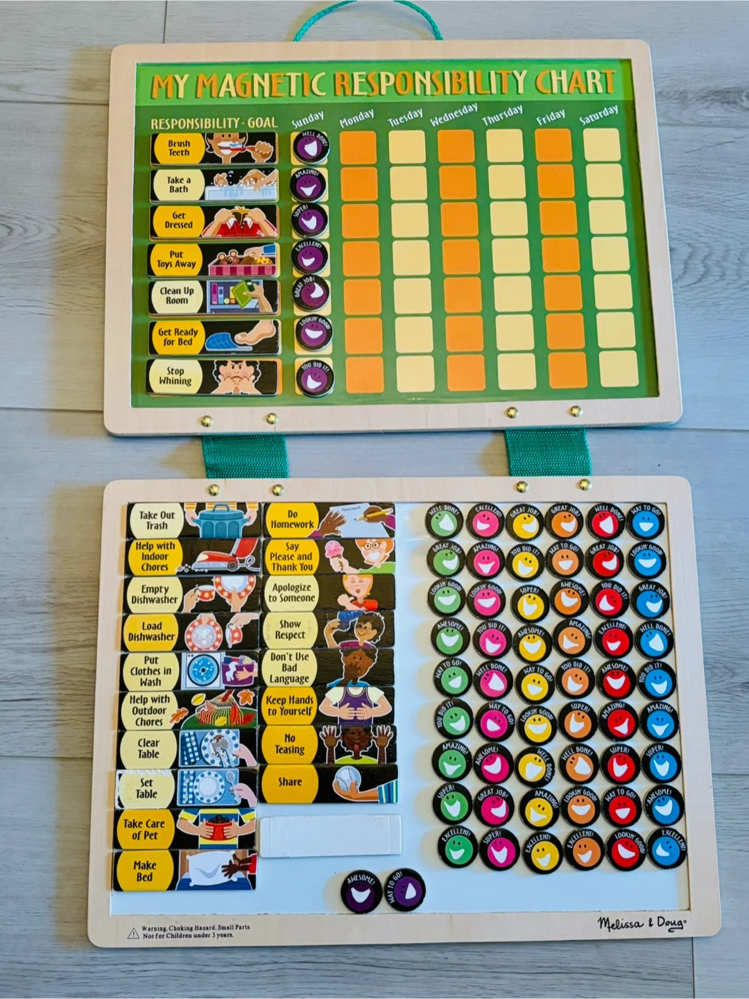 Get your little ones organized with this Melissa & Doug Magnetic Responsibility Chart! It's a fun way to teach responsibility and track daily tasks. Comes with lots of magnetic pieces to customize the chart for your child's needs