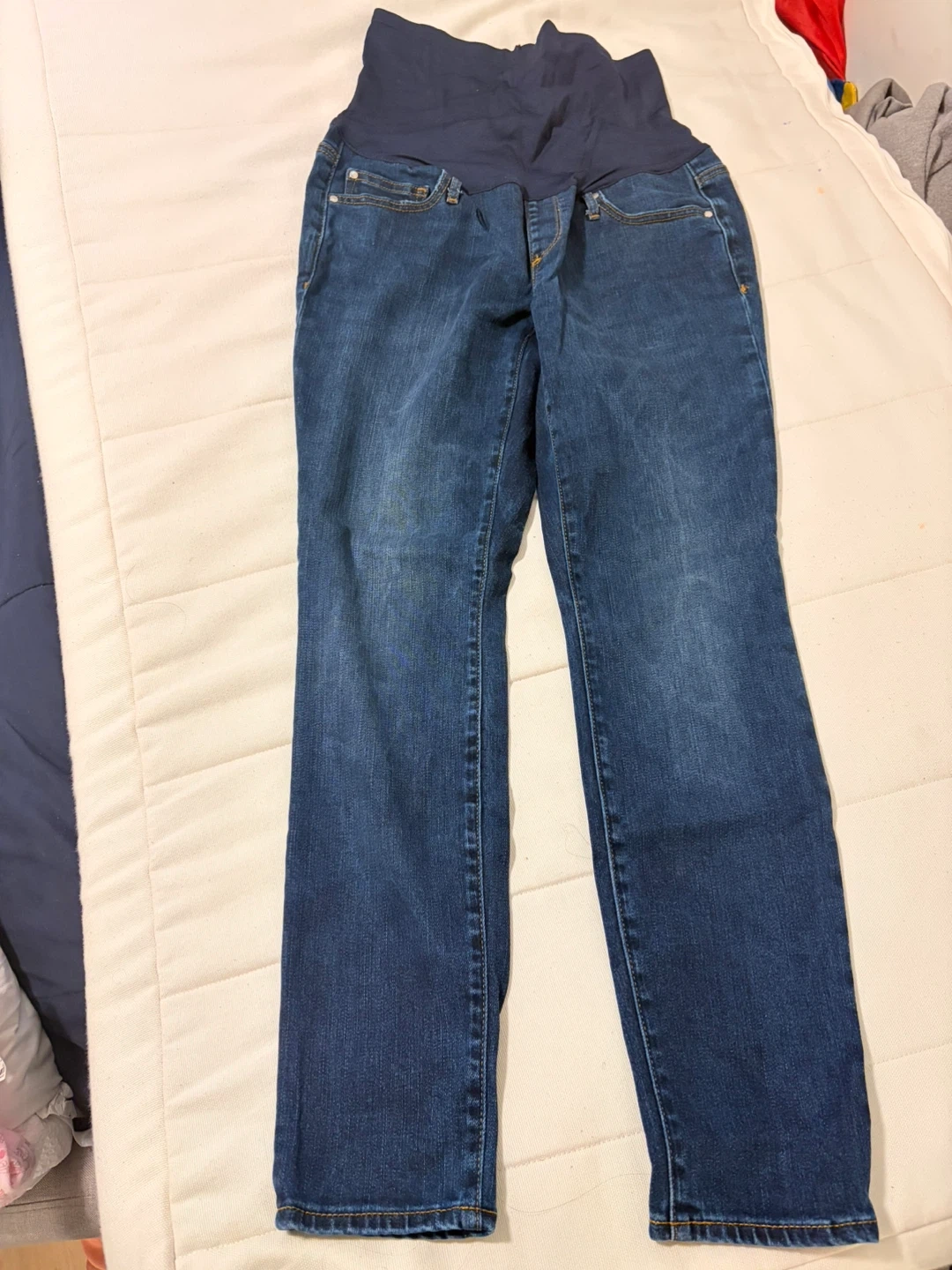 Selling GAP True Skinny maternity jeans in size 6! They are in great condition and perfect for expecting mothers looking for comfortable and stylish denim